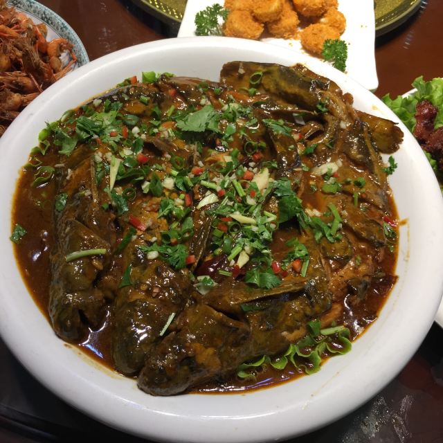 地道东北菜,吸引了大批吃货,就连明星孙红雷也曾到访过,可见小店人气有多旺啊。招牌菜正如店名,黑皮肘子和锅包肉。油亮亮的肘子,金灿灿的锅包肉,这两道是东北的经典老菜,在哈尔滨的炒菜馆儿,几乎家家都可以看到。黑皮肘子几乎是每桌必点的招牌菜。与一般常见的红亮亮的肘子不同,这里的肘子颜色黝黑,口感更软糯。先炸后煮让肘子味道更加浓郁,醇香厚味超对北方人的口味。胖乎乎的肘子轻轻一夹就骨肉分离,胶质连着瘦肉入口即化;锅包肉还没上桌,热腾腾的勾人酸香便推门而入,一大盘黄白色云朵一般的锅包肉飘在了你面前,表皮的酥脆震颤着你的牙齿,些许糖醋汁刺激着你的味蕾,里边猪里脊肉的绵软和韧劲给了你最后一丝抚慰,简直好吃到哭。