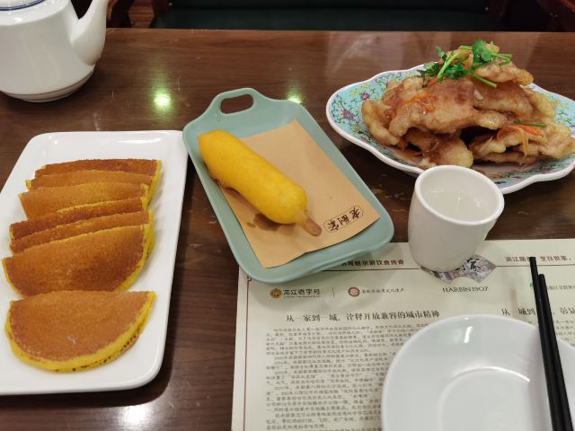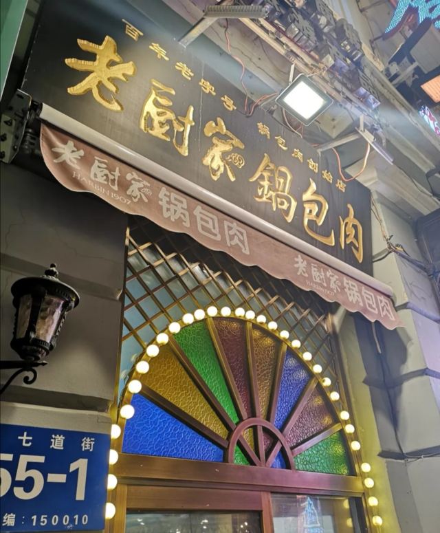 Alexiuss这是我第一次在携程写评价,不是因为别的,只是想特别好评一下这家店,首先我这个人本身就对所谓的老字号和景区美食毫无兴趣,因为景区的东西大家都懂,都是所谓的文字招牌而已。但是这次因为朋友一定要去所以就陪衬着来了。 我们一共两个人,首先等了大概四十分钟,真的等到已经烦了困了,进去的时候意外的发展餐厅服务人员服务态度非常好,我们是坐在餐车间,环境也非常好,一点也不喧闹。 上菜比较慢,全上齐大概用了30分钟左右,上菜以后第一口吃了锅包肉,不得不说,这家老字号真的是出乎意料,完全对得起老字号这个金字招牌。而且饭菜即使放到第二天加热吃口感依旧,完全可以正常食用。 最后最让我震惊的市结账的时候的价格,一道锅包肉,滑溜里脊,和一个茄子,两碗饭一杯果汁和饮品,一包纸。竟然只用了130多块!!!这其实是最让我震惊的,本身是外地人在我们那边随便一点的餐厅吃饭也要个小200,这家店作为中华老字号而且在中央大街上,竟然这么便宜!!!总而言之强烈推荐这家店。 中华老字号,当之无愧。