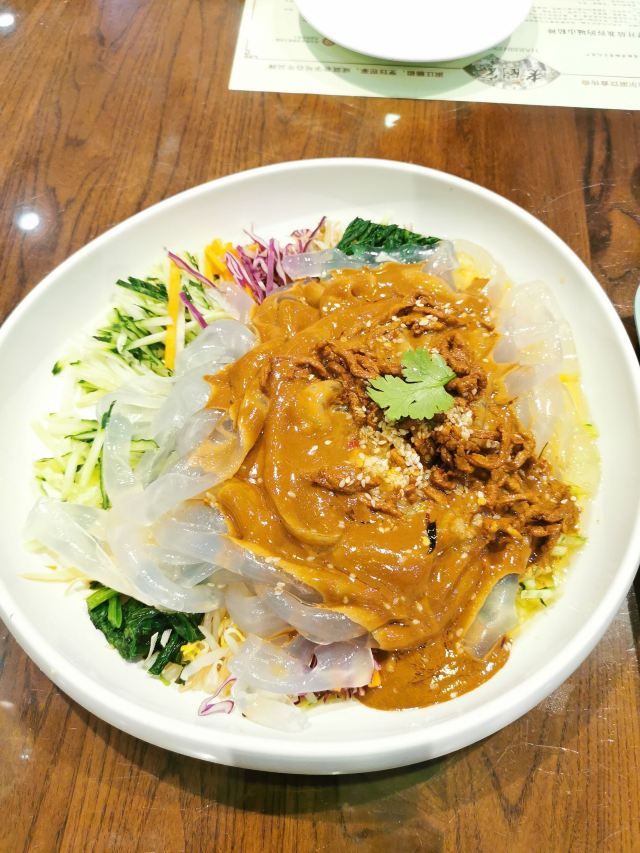 食行天下旅行家哈尔滨最具知名度的餐厅之一,锅包肉是他家镇店名菜。这道菜由餐厅创始人郑兴文独创于清光绪时期,历经一百多年,后几经改良成为了哈尔滨当地最熟悉的一道家常菜。这道菜口味酸甜,外焦里嫩,当时是为了迎合外宾的口味,由焦溜肉片改良而来。如今餐厅由郑家第四代传人经营。这家店位于中央大街巴拉斯美食城三层,这里也是一处历史建筑,最早曾是一座电影院,如今被改造成了美食城,美食城三层都被老厨家占据,这里被分成东西南北四个就餐区域,每个就餐区的风格都不一样,四周区域还摆放着很多老物件,墙上挂着许多老照片。吃完饭还可以四处逛逛,找寻一下怀旧的气息。这次是在中东铁路火车餐区就的餐,这个餐区看上去就像一节节连接的火车车厢,而自己仿佛置身于车厢之中。锅包肉是必点,这道菜吃起来外焦里嫩,酸酸甜甜。里面的肉是猪里脊肉,而外皮炸的金黄,吃起来除了焦酥还有一种糯米的软糯在里面,口感好似炸糕一般,只是馅料换成了瘦肉片,再配上胡萝卜丝姜丝和香菜梗点缀,味道很不错。除此之外他家的炒肉拉皮也很受欢迎,他家的这道凉菜和别家也有所不同,除了炒肉末,拉皮和黄瓜丝还有胡萝卜丝、豆芽和菠菜,再浇上调配好的浓香麻酱,色香味俱全,吃起来口感酸甜,酱香浓郁。奶油手撕饼,价格不贵,很大一张,吃起来奶香十足。他家的自酿格瓦斯味道也很好,口感醇厚甘香,味道很棒。总体感觉这家店是哈尔滨老字号,东北菜锅包肉很正宗,他家外面还有外卖口,售卖锅包肉,可以打包带走。