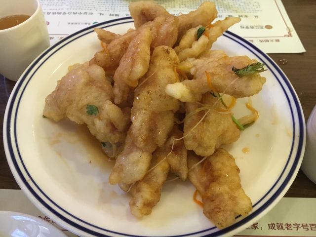 据说是哈尔滨做锅包肉最正宗的一家东北菜馆,而且已经开了快一百年。在中央大街马迭尔宾馆对面。整体环境有点俄罗斯和老东北风格。有些就餐区是模拟火车车厢做的。 她家就是高峰时间服务员太少了,根本忙不过来。不过都挺热情的。 说说她家的菜品。锅包肉,据说哈尔滨排名第一的锅包肉,朋友们都说他家锅包肉酸的呛鼻子,不知道是不是我这份换厨师做了,感觉没啥酸味,难道是我比较能吃酸,至少没有感觉到呛鼻子啊,菜量还是可以的,肉很薄,一点都不硬。 贡米丸子是全场最佳!太好吃了吧!最后吃完又要了一份打包回宾馆,老公也说好吃的! 总体来说还行,人均5.60吧