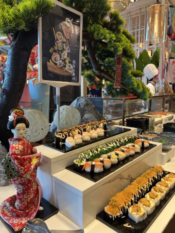 刺身,三文鱼,厨师特派菜,串串香,小龙虾,海鲜,水果,松咖啡自助,牛排,蛋糕切块,冰淇淋蛋糕,果盘,小火锅,羊排