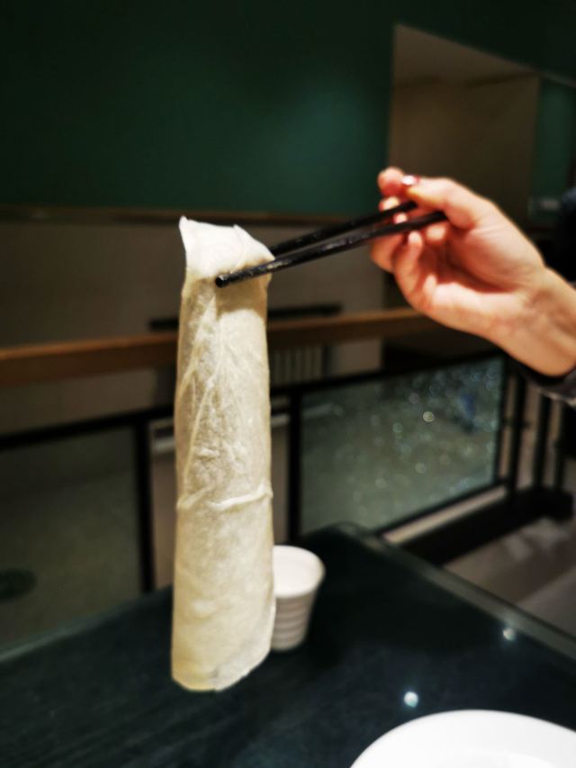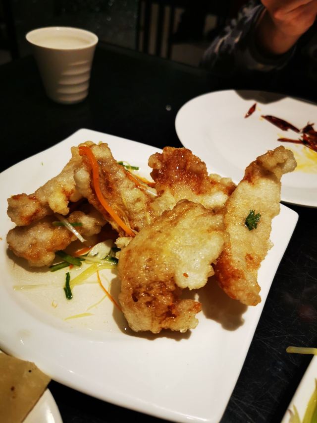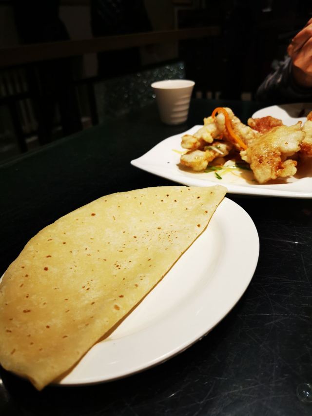 魔女锦鲤之前听朋友介绍老昌春饼,味道好,价格实惠,这家分店有两层,地面一层,地下也有一层,估计算是地窖吧,下面的一层很暖和。餐单有几款不同的菜,饼、粥类,冷荤类,小炒类,汤品类等等。我们只有2个人,也不能点太多,要了一对春饼和筋饼,然后再要了一份嫩炒鸡蛋和京酱肉丝,同伴想要一些暖肚子的东西,所以就另外再要了一碗鸭架豆腐汤。菜很快就上来了,鸭架豆腐汤18元一份,超大的,起码是4个人的份量,慢慢都是材料,鸭架里带着一丝丝的肉碎,豆腐也挺不错的。汤味道也可以,同伴喝了很多碗。另外极力推荐筋饼,很薄很薄,颜色近乎于透明,有韧劲,包裹着小菜一起吃,味道极好。春饼就稍微厚了一点,软软的,相对于筋饼来说就有点干,但各有特色,同样是包裹小菜吃的。嫩炒鸡蛋,很大一盘,2个人都吃不完,鸡蛋很嫩,但味道有点偏咸了。京酱肉丝,也是满满的一盘肉丝,下面垫了小黄瓜丝,因为点餐的时候有交代不吃香菜大蒜之类的,所以就没有上。味道还不错,但同样是偏咸了。感觉东北人吃的东西都比较咸。整顿饭下来份量实在太多了,吃不完。