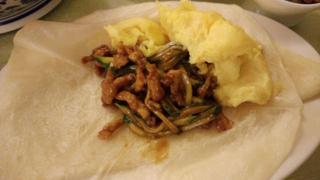 京酱肉丝,麻酱拉皮,甜面酱,筋饼,春饼,香辣肉丝,嫩炒鸡蛋,熏肉,香辣土豆丝,鱼香肉丝,炒合菜,山药小枣大麦粥,老式锅包肉