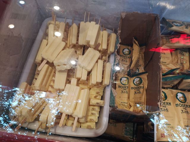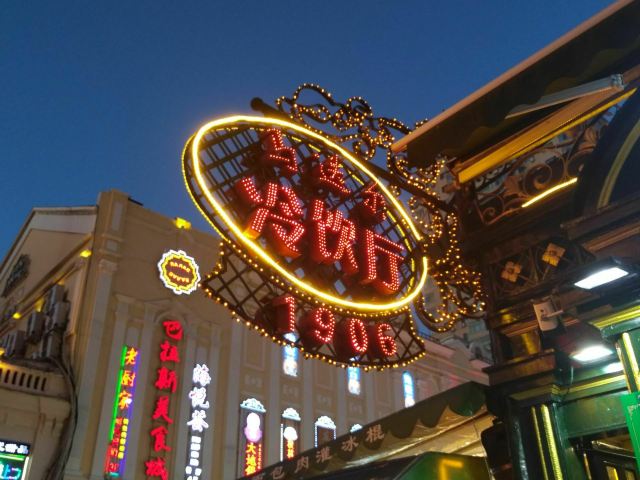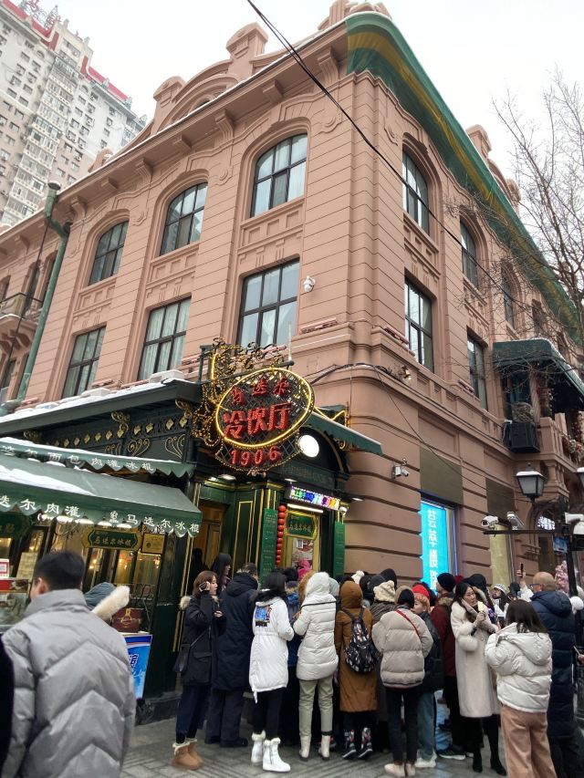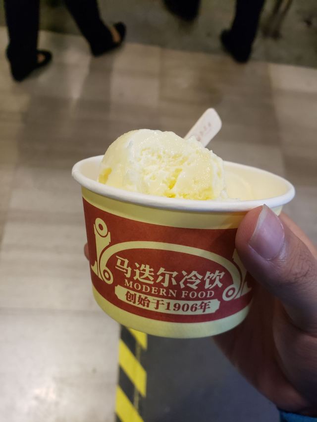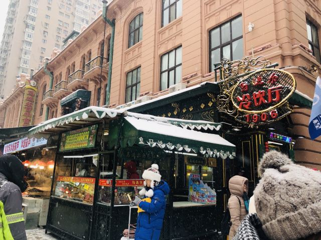 1906 MODERN来哈尔滨不得不打卡的一家店,马迭尔,这家马迭尔冰棍是当地最为正宗的一家,这里只卖有4种产品,原味冰棍、奶油香草冰棍、咖啡冰棍、冰糖葫芦,虽然如此,可是大老远处就能看到起伏的人群排着队购买。 来到这里就会发现哈尔滨零下的温度,冰棍也不需要冰箱,都是敞开放在塑料盒里直接卖的,而且冬天吃冰棍怕太冷?No,完全不用担心,外面冷,吃冰棍就一点也都不觉得冷了。 所以冰棍口味都尝了一遍,每款味道都好浓郁而且细腻顺滑,冰糖葫芦也好吃哦,里面居然还加了红枣,emmmm……,跟我们南方的不一样哦。小声bb的说一声,马迭尔太好吃了,以至于我们在中央大街呆了一天来买了三次。