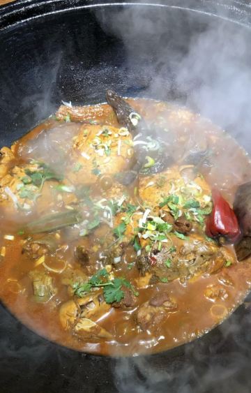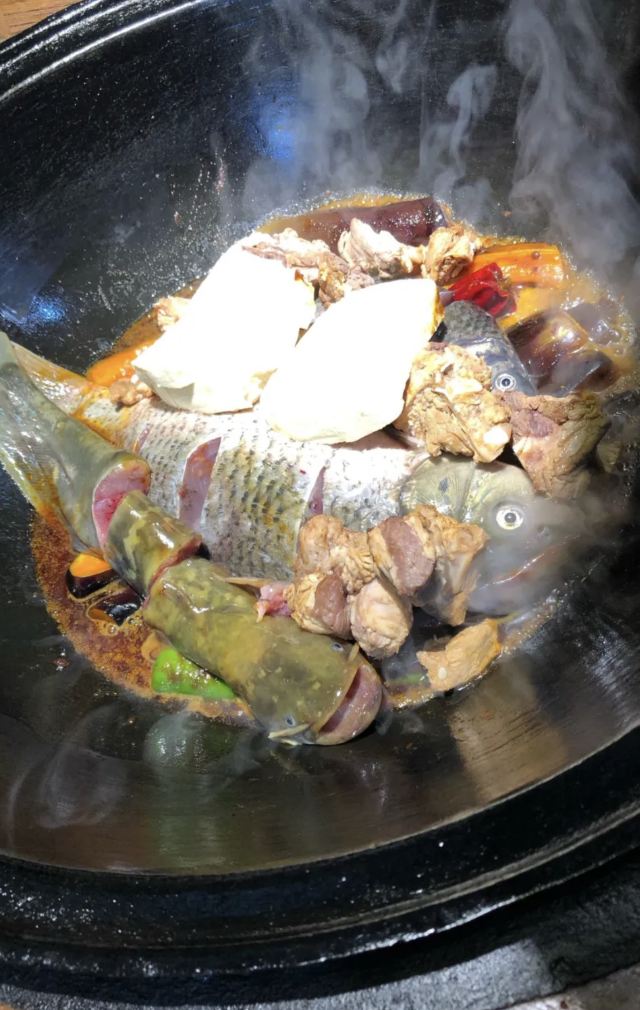 铁锅炖确实很好吃 尤其里面是用柴火炖的 而且我爱吃炖鸡肉 或者鱼。然后加满满的菜和粉条 太好吃了 简直就是美味
