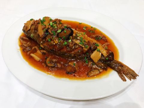 DaoXiang Restaurant (Ying Xi)这家店位于江南大道盈熙商贸中心的五楼,离地铁站和公交车站有一定的距离,交通不算很方便。 店面很大,占了整整的一层,有包间和大厅,装修得富丽堂皇 红烧黄鱼 黄鱼很大条,非常新鲜,肉质结实细腻,没有很多的骨头。 农家羊腩煲 羊腩很多,都是带皮的羊肉,焖得很淋很入味。里面的支竹吸收了羊油和酱汁的味道,更加好吃。 果酒 度数不高,带有果香。