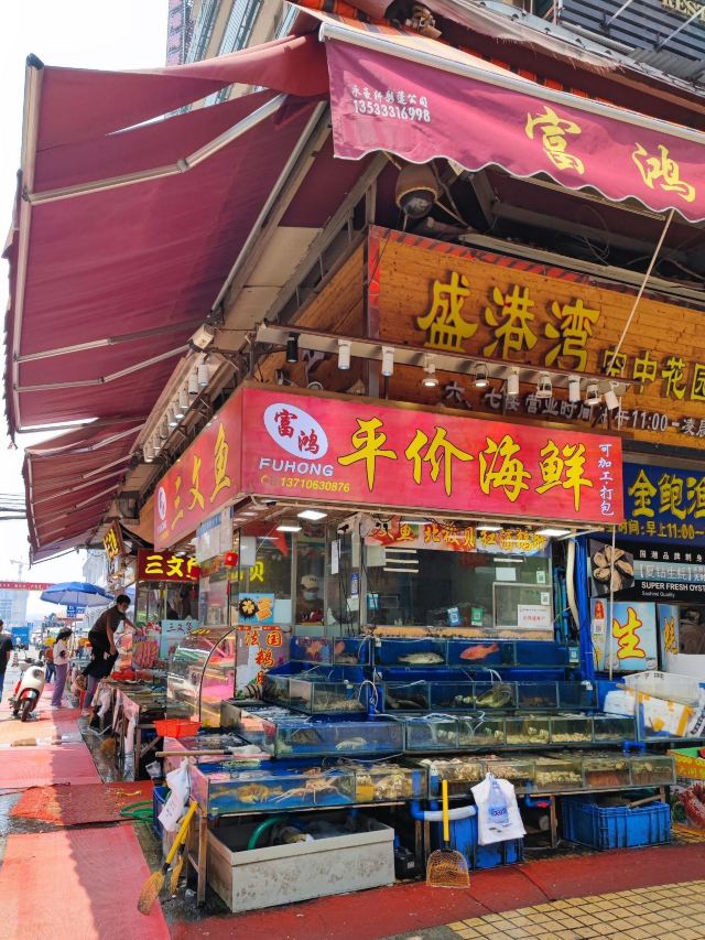 <p>黄沙海鲜水产市场是华南地区最大的水产交易批发市场,靠近黄沙码头,供应最新鲜的生猛海鲜和淡水鱼类,品种齐全,各大海鲜酒楼都是在这里挑选海鲜类食材,游客也可以在这里挑选好海鲜再去旁边的酒楼加工,享受最新鲜的美味。盛港湾和金沙湾都是这里口碑比较好性价比较高的海鲜酒楼,可以考虑去这里饱餐一顿。</p>
