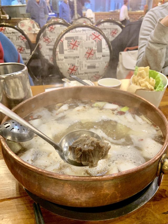 在克拉美食街,比较有特色的蒙古美食餐厅,主要是牛羊肉烧烤和面食,以及羊杂汤。虽然比不上去西北旅游时吃到的美食,但偶尔来过过嘴瘾也不错。