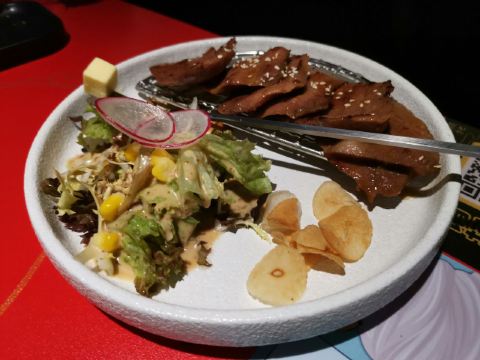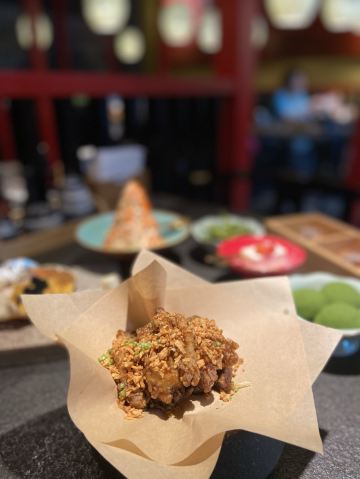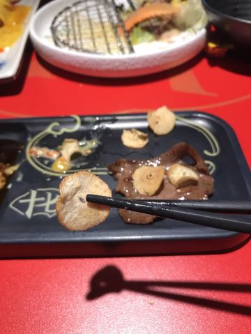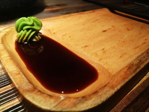 日式的装修风格,餐具都很有特色,竹制的水杯,很特别,用来进食的碟子也是木制品,而且专门有个凹槽转酱油,非常人性化。味道非常棒的日式芝士炸豆腐,很新颖的菜式,一块厚厚的芝士铺盖在炸豆腐上,淋上可口的蓝莓酱,入口是一层层不同的口感,层次很丰富,再加上蓝莓酱的搭配很可口,一点都不腻。此外每道菜的摆盘都很漂亮,感觉非常的用心。