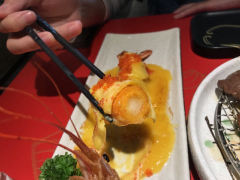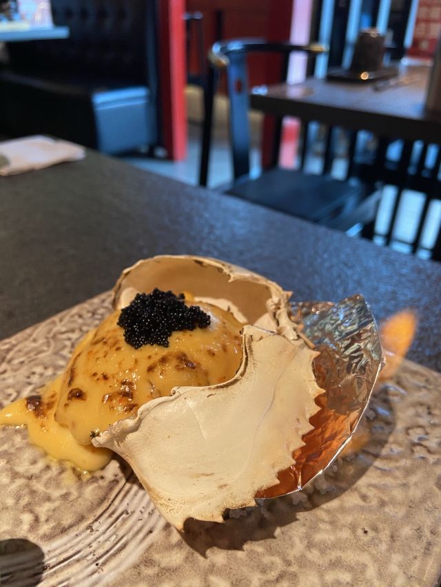 正牌一旧云打卡广州最会玩火的日料店|最爱鹅肝新品 💕听说火炙大神♨️御前十七又出新品了,约上闺蜜👭来打卡这家超多玩火🔥表演的“网红”十足日料店! 🍽推荐新菜: 🍍凤梨鹅肝一口烧,只吃过苹果+鹅肝、樱桃+鹅肝,没想到酸酸甜甜的凤梨和热辣辣的鹅肝也这么搭,加上底层的脆吐司,真系不错的口感! 🍣鹅肝酱炙烧寿司拼盘,大虾、蟹棒、鳗鱼、三文鱼、赤贝炙烧寿司错落有致的放在三格木盒里面,颜值真高,热辣辣的吃口感更好! 🍓草莓芝士小豆腐,红草莓、白豆腐放在一起煞是好看,芝士味道浓郁! 🍗吮指蒜香小鸡翅,很大分量的小鸡翅,特别喜欢蒜头片的香味。 🥔蟹籽土豆沙拉,闺蜜最爱的沙拉,只是今天的酱汁有点不够,吃到最后叫服务员加点酱汁,然后我们就清盘了! 🦀️海胆酱焗蟹壳烧,看着服务员在桌前的🔥玩火表演,真系沉浸式的日料体验,加上黑蟹籽就更漂亮了。 🍵抹茶糯米糍,这个大福是我最爱的味道,很满足! ☕️桂花乌龙茶,除了传统的玄米茶,新茶品挺香的,不过不耐冲,很快就淡了。 🏠环境: 红红黑黑的装修风格,特别喜欢里间的墙面卡通形象,到处都是拍照墙! 💁服务: 午餐虽然客人很多,但服务员照顾得当,一挥手就来服务了。 🏡餐厅:御前十七(仰忠汇店) 🚘地址:广东省广州市越秀区北京路粤海仰忠汇8楼CGV影院旁 ⌚️营业时间:11:30-14:00,17:00-21:00 #吃在广州# #同城种草# #异国料理人气榜# #越秀区美食# #五一美食指南# #网红日料店#