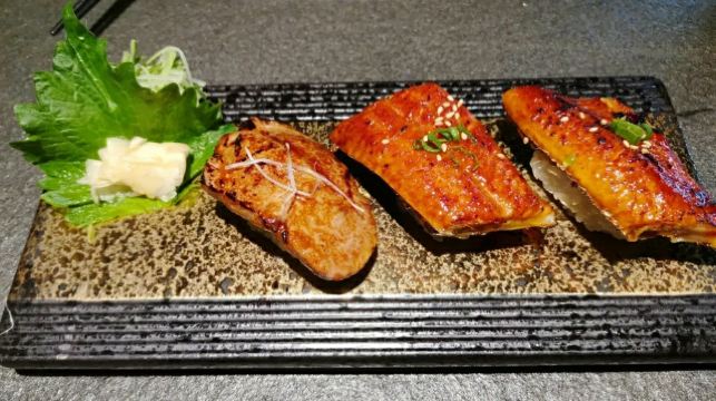 烟雨蒙蒙细雨飘飘鹅肝瘦肉,肥美的肝,好好吃,芝士鳗鱼卷,口感丰富,三文鱼寿司,滑滑的口感,鸡排拉面,很好吃,面香汤好,环境不错,值得一去