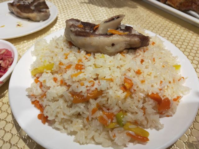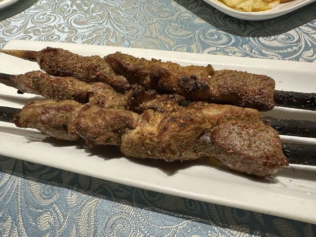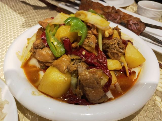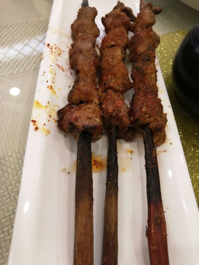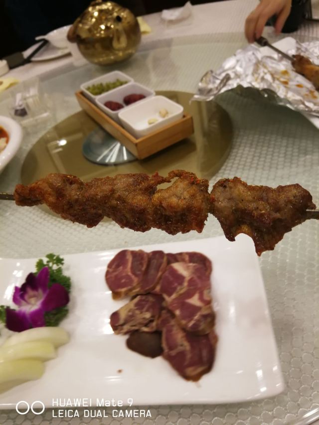 Bazha Food听说新疆大厦这里的餐厅出品非常不错,有朋友吃过好,所以带我们过来尝一下。餐厅位于天河北路,市长大厦旁边,餐厅是在大楼的二楼,用餐环境挺好的,座位宽敞,大厅范围很大。晚上来到这里的,有新疆舞蹈表演,大概间隔半小时左右就跳一跳。点了几道特色菜,真是太多好吃的了,选择困难症。 这里的羊好吃,非常有羊味,而且不骚。{羊肉串},一串有四大粒肉肉,第一二四粒肉都是90%瘦羊肉,虽瘦但是吃起来一点不会硬,也不会粘牙,第三粒是55肉,半肥半瘦,吃起来更香。一串羊肉串28元,建议两人一串分着吃足够了,留点肚子尝别的菜品。 {烤羊排},这羊排可嫩了,就是看到肉的颜色就知道有多鲜嫩,肉质是粉嫩粉嫩的,上层皮烤至金黄色,稍脆,连带的骨头基本上就是脆骨,肉汁直流。 {酸奶}、{缸缸肉}也都是经典名菜,吃得停不下来,可惜胃口不大,撑不下多少,留下次机会。