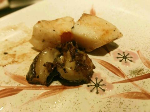 去顺德临时在广州下榻一晚,朋友圈不小心暴露了行踪,立马被广州的朋友锁定了,生拉硬拽一定要一起吃饭,朋友找的这家位于丽柏广州五楼的金井日本料理。由扶梯上去,被旁边的室内喷水池吓了一跳。 门口服务生小姐姐很热情,带我们进到座位,而且会粤语,国语也很标准,完全不像惠福东路那些开店的阿婆。上菜介绍也很勤收盘子换骨碟,一下子拉高了广州服务的印象分。 这个半开放的包间临近街道,高大的落地窗可以一边吃一边欣赏灯火璀璨的城景。包厢采用和式装修,需要拖鞋,一些清酒盒与瓶子都是很好的装饰物。 前菜为金井「沙律」,几样果蔬搭配在一起,红的绿的黄的很是好看,浇上油醋汁,开胃的同时还很美味。 「烟熏三文鱼刺身」对于一个日料爱好者来说,刺身吃了很多次,烟熏的三文鱼刺身却很少见,与三文鱼相比,烟熏味很浓郁,且也具有一定的盐分,而鱼肉则保持生鱼片Q软的口感。 「黄金酱烧广岛蚝」一份两头,个头很大,蚝肉饱满,对于海边长大的人来说,这个蚝第一感觉是新鲜,而很快芝士便开始接管味蕾,香浓的芝士与鲜美的蚝完美搭配。 「法國鹅肝」一式也是两份,以脆烤过的面包为基底,铺上肥厚的鹅肝,鹅肝色泽鲜艳均匀。鹅肝必须与面包同食,鹅肝油香四溢,渗入面包之中,一脆一嫩,相得益彰,而吸收了鹅肝油脂的面包抵消了鹅肝的那种腥味。 「铁板牛肋肉」个人很喜欢的一道菜,牛肋肉经过炙烤,满屋喷香,趁热吃一块,收汁入味,牛肉特别嫩,略带一点嚼劲,吃起来非常带感。 「铁板烧白蘑菇」很独特少见的一道菜,以白蘑菇为小盅呈汤。汤汁一口的量,但是却鲜劲十足,用叉子叉起整个白蘑菇,喝一口汤,再吃下模糊,都是大森林的味道。 「雪蟹焗寿司卷」便是主食了,没想过蟹肉也能做出如此清新的味道,很有海岛风情的一道寿司,除了部分两个略松垮,一夹就松了,味道形制都很好耶。 最后送的小甜点,非常暖心。「甜品桃胶」冰冰凉凉还有小颗粒,我是很喜欢的。
