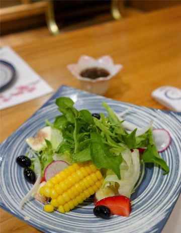低调轻奢的日料,环境安静舒适,每道出品都很赞,食材新鲜,摆盘精致。金井沙律配以时令水果与小玉米切片,洒了芝麻的沙律汁夹杂着蜜豆,酸甜可口,是开胃佳肴。金井特选刺身拼盘,食材品种丰富,看着就超有食欲,新鲜美味。夜幕降临时,还能在窗边欣赏到环市东路的美丽夜景,视觉味觉双享受。