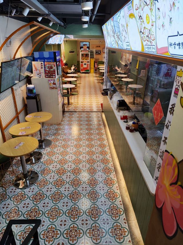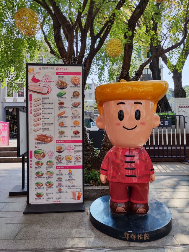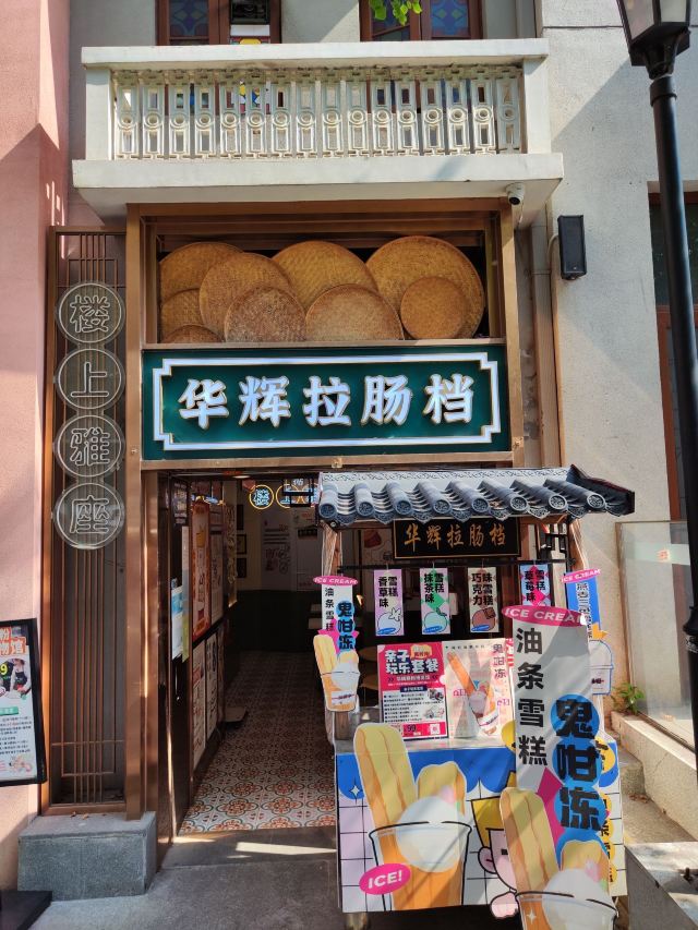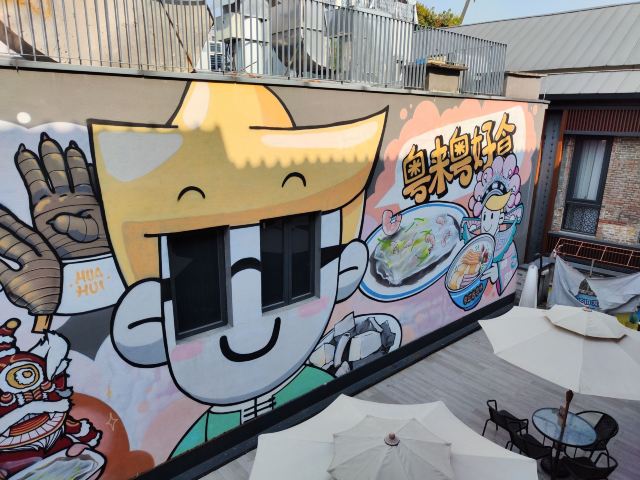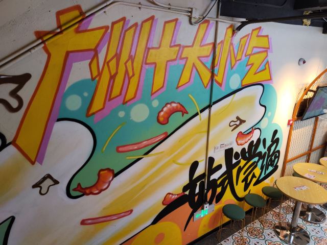 华辉拉肠永庆坊店,位于广州市荔湾西关永庆坊旅游区二期内,这家餐厅与华辉拉肠博物馆是连在一起的,参观完博物馆后可以在这里吃上一口新鲜制作的肠粉,在博物馆旁边也有门口直通餐厅,店铺的用餐位置布置紧凑,采用了色彩鲜艳的涂鸦布置,显得相当有活力,出品方面也是比较丰富多样的。