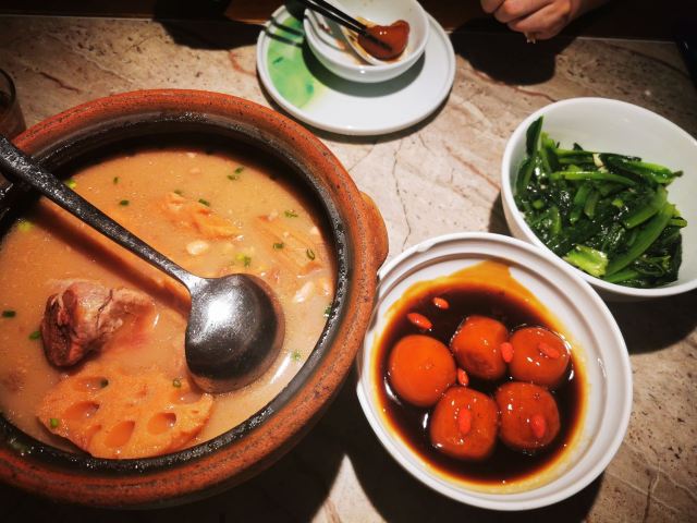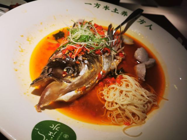 这家店就在原来开饭的位置,重新装修成了沅江水 还是原来的两层小楼,但不会有压迫感,很多大屏美图看着视野豁然开朗哦 看菜牌菜式就知道是地道的湖南菜,家宴不假! 招牌水库大鱼头其实不太辣,还加入了面条和芋艿,点这个菜可以把主食也省了,呵呵 洪湖莲藕的莲藕应该挺正宗的,非常粉,但是做法上感觉姜还是放得不够,姜的味道几乎可以忽略 糖油糍粑甜甜糯糯的挺好吃 tips:吃饭的话可以免费停车1.5小时,凭消费小票到建滔前台兑换就好