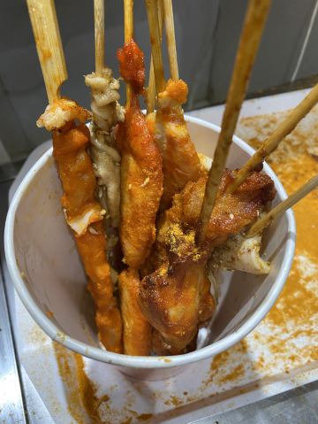北京路上的一家串串,北京路上有好多串串店,每个店都排好多人。这家店叫号蛮特别的,付款价格就是你的取货号。味道呢选的微辣,但感觉咸鲜辣都不太足。