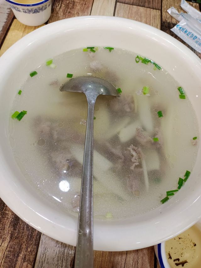 几丁不二也算是偶然吧,出差回来收到短信要求72小时内验核酸,不敢怠慢,赶紧找医院验。好多医院不能约当天,听说市八东风院区当天可验,就急忙打车过去了,检验很顺利,验完已到饭点。同事提议到粤北大厦吃,于是就走了过去。去到竟找不到饭馆门口,后问人才知道要从酒店门口进去坐电梯上四楼再走一层楼梯才能找到雄州土菜馆。菜馆不大,真有点快餐厅的感觉。 听说南雄过去即是湖南,饮食习惯跟湖南比较接近,吃辣比较厉害。果不其然,这里出品大部分都是辣菜。爆炒牛三宝香辣可口,十分开胃;油豆腐炒五花肉,油糯肥香辣口,十分下饭;淮山土猪汤,汤很稀,略有点肉骚味,问店家要点胡椒粉加进去,就好了很多。总的来说,这里食材还不错,辣的感觉跟湖南那边好像有点不一样,能吃辣的,不妨来试一下。
