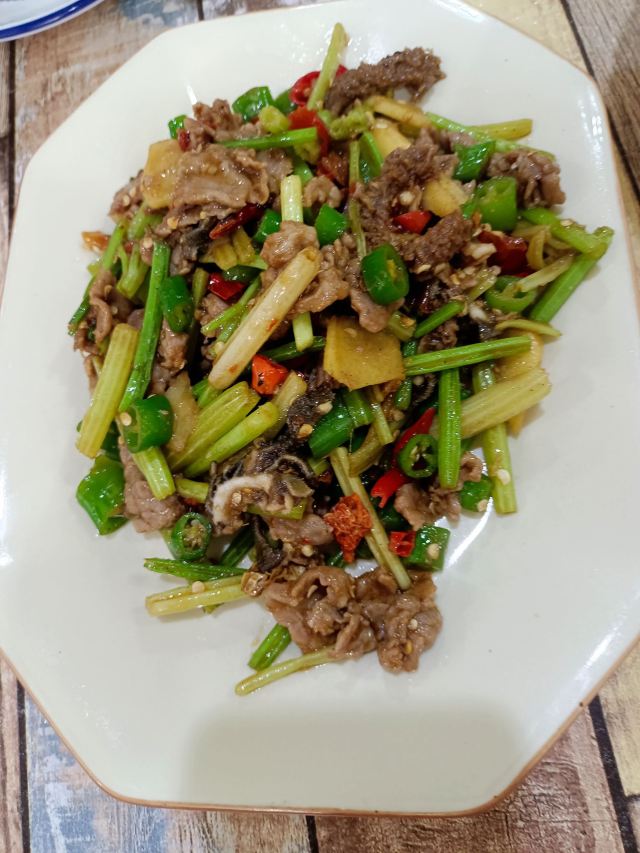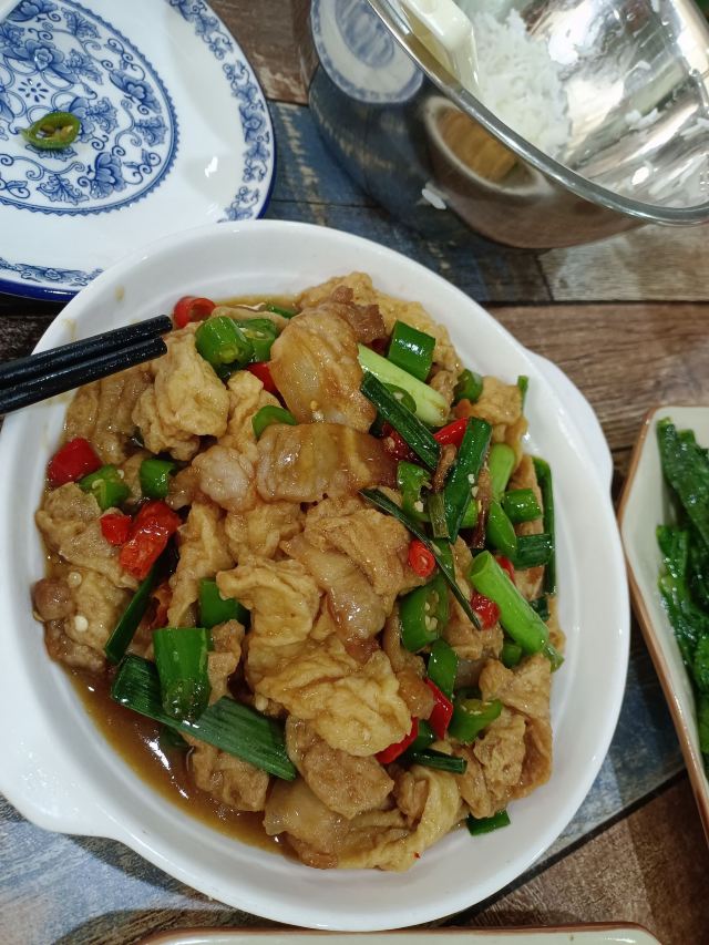 NanXiong Tu CaiGuan也算是偶然吧,出差回来收到短信要求72小时内验核酸,不敢怠慢,赶紧找医院验。好多医院不能约当天,听说市八东风院区当天可验,就急忙打车过去了,检验很顺利,验完已到饭点。同事提议到粤北大厦吃,于是就走了过去。去到竟找不到饭馆门口,后问人才知道要从酒店门口进去坐电梯上四楼再走一层楼梯才能找到雄州土菜馆。菜馆不大,真有点快餐厅的感觉。 听说南雄过去即是湖南,饮食习惯跟湖南比较接近,吃辣比较厉害。果不其然,这里出品大部分都是辣菜。爆炒牛三宝香辣可口,十分开胃;油豆腐炒五花肉,油糯肥香辣口,十分下饭;淮山土猪汤,汤很稀,略有点肉骚味,问店家要点胡椒粉加进去,就好了很多。总的来说,这里食材还不错,辣的感觉跟湖南那边好像有点不一样,能吃辣的,不妨来试一下。