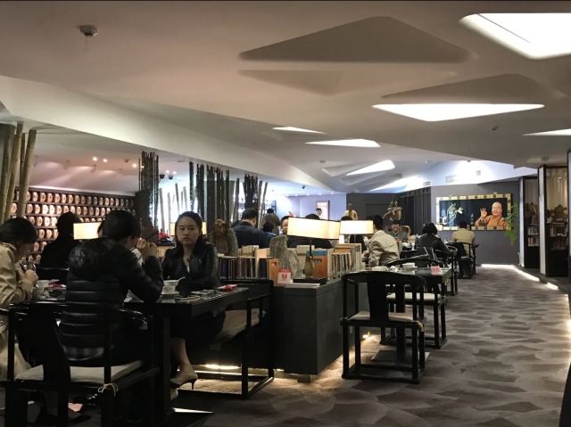 DI SHUI FANG这家餐厅位于珠江新城的大剧院里面,由于大剧院的设计,在里面的餐厅都是显得天花比较矮。它离我公司不远,有一天中午,有同事约吃饭,她建议我们来这家餐厅吃,说试一下素菜吧,我自己本来是肉兽,但是偶然也是想清清肠胃,吃一顿素也是可以的。 来到餐厅的时候是星期五的中午,还没有到12点,但是餐厅已经是坐了很多客人了,也许是由于餐厅的餐桌摆得比较宽松,加上一排类似独立包厢的桌子又提前被预订了,尽管客人还没有来,桌子空着,一直从我们进餐厅,到离开的时候大概1点都还没有人来,但是也不允许我们先用这些桌子。这里的东西一点也不便宜,一份凉菜都是30-40左右,主菜的就更加贵,大概50、60以及100的价格都有,如果像是工作日的时候,普通吃个商务餐的话,最好不要考虑这里了。我们浪费了很多时间在等位、点菜上,所以只敢点饺子、汤面和炒饭的。饺子不错,24元一份,一份有六个,没有肉的似乎会贵些,但是每一个饺子都是那么的饱满,不会有一烫熟就缩水的现象。里面的馅都是素菜,以豆苗菜为主,很嫩的豆苗,不会有渣。香菌炒饭,居然分量很小,但是价格38,对于其他的菜式来说,简直就是“便宜”。 总体环境很好,有佛教的装饰,而且到处都放着书籍,当然客人也可以拿来看,但是不可以拿走。服务员态度很好,动作很快,上菜有点慢,可能是我们心急赶时间吧。