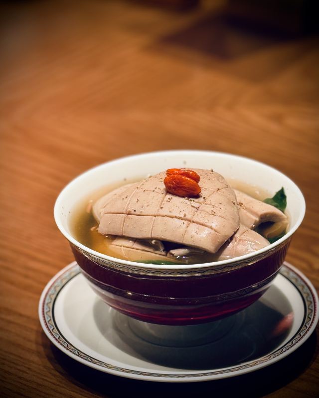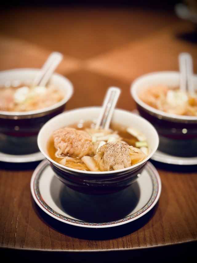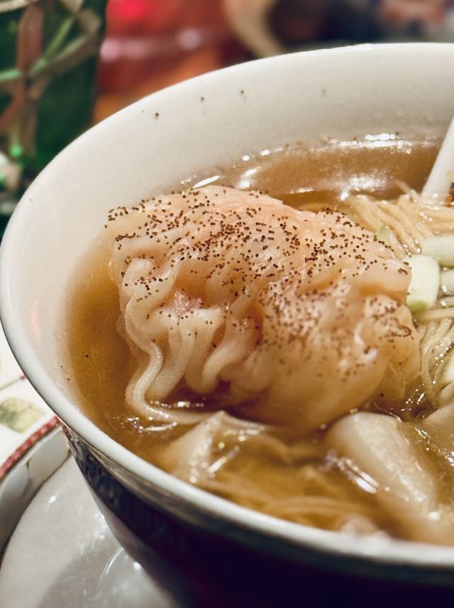 Sing Wan Loi Noodle Restaurant酒搭子 广东烹饪协会常务副会长魏旭翔同志自诩是我朋友圈提及最多的男人,但辉哥严肃地告诉魏常务副会长:陈晓卿老师才是! 那谁是我朋友圈提及最多的女人呢? 她既是辉哥中山大学嫡系师妹,又是选美出身的魏常务副会长的酒搭子和饭搭子。 宁姐姐昨天约我去一家云吞面楼上喝唐贝里侬P2,席间她表演了刚刚修炼成功的绝技——用心灵意念把金属勺子生生掰弯! 这一绝技应该能够震撼许多研究所,魏常务副会长对此应该深有体会…… 言归正传,辉哥的师妹们说请我喝唐贝里侬P2香槟时,我一看用餐地址居然是个云吞面店,不由心里咯噔了一下。 上一次有辉哥出现的酒局,就因为地方没选好惹得辉哥不快,这回怎么跑到云吞面店来搞酒局了呢? 将信将疑来到这家“昇运来云吞面”才知道这面馆大有来头,是“御膳汤品”旗下的港式云吞面店,而我们品酒的所在,是“昇运来云吞面”珠江新城店二楼上的内部品鉴会所。 别看只是面馆的阁楼,坐下来就知道这家餐饮体系很有内功了,服务员的素质到位,品酒用的冰桶酒杯面面俱到。 关键的问题是吃什么呢? 足斤足两的“蝎子炖陈皮水鸭”是道典型的老广汤水,厚重浓郁,其实用来搭配勃艮第的白葡萄酒绝对是“老蝎子爬老藤”,很过瘾。 会所空间里不能点火,只能采取火锅烫食的方式,这反而是容易搭配酒水的好选择。 有酒泥参与发酵的唐贝里侬P2可以搭配新鲜海钓的“红玫瑰”鱼,以及并不逊色于新西兰竹蛏的大连蛏子王。 烫猪腰绝对是搭配勃艮第红葡萄酒的优选,我刚抱怨了几句“猪腰老了”,没想到执着的店长非要重新做一份让我再试试。 所谓“知错能改,善莫大焉”,第二次端上来的猪腰把我们所有人都惊呆了,完全是一种“哀而不伤,乐而不淫”的妖艳与鲜嫩啊! 看得出来这餐厅的基本功相当扎实,果不其然,当心大家只是打边炉会觉得缺少饱腹感,几碗热气腾腾的港式云吞面从一楼端了上来,每碗供奉着两枚大云吞,一枚是海胆馅的,一枚是现剥的虎虾馅的。品质相当不俗,只是价格也只能在富人区寻觅知音了。 富人区也会形成一个高端的生态网络,用意念掰弯勺子的宁姐姐觉得还是要有甜品才算是完美酒局,于是马上预定了附近一家蛋糕店的蓝霉巴斯克蛋糕。 也许是被大姐姐们的美酒和餐厅的美食感动了,吾家少年自告奋勇下楼为众人取蛋糕,回来少年偷偷告诉我:这蛋糕店贵得离谱啊! 我对他说:广东烹饪协会常务副会长的酒搭子,那能吃一般的人间烟火吗?