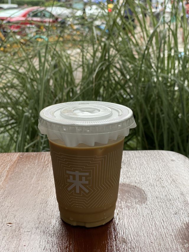 之前买了3.8元的咖啡,来到江南西路,顺便提上一杯,来回咖啡店的名字都是那么的隐蔽,不容易发现,当你看到有一间水泥毛胚房似的店铺,就要留意一下了,应该就是来回咖啡。这一家店铺是在润汇楼下的紫山大街走进去一点,工商银行旁边。周末的时候特别多的年轻人,有室内座位和室外的,室外的很简单,一张高大的胶椅子一放,就可以了。咖啡嘛,感觉拿铁喝多了,觉得奶越来越浓,浓得有点过头了。