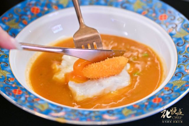 饭醉分子闫涛没想到 没想到那家以京城果木烤鸭而闻名羊城的“花悦庭”,在不知不觉中已经悄然转型为“现代浙菜”了。 没想到原本只是江南风月的大闸蟹,终于也被膜拜奄仔蟹和黄油蟹的岭南人“收做了偏房”,每年大闸蟹膏肥脂满时,便有了饕客的一期一会。 没想到人民群众对于吃大闸蟹的专业程度已经精进到理性阶段了,从前知道中秋吃蟹乃是以讹传讹,重阳持鳌才是上上之选,到如今已经知晓“天不冷,蟹不肥”。可怜身上衣正单,可爱桌前蟹正肥。在冷空气即将横扫广东之际,花悦庭的这一席“宴遇鎏金,蟹逅风味”,可谓是老房子着火——迟来的爱刚刚好。 没想到中国第一款现代黄酒“慢宋”在一片质疑声中获得了市场的认可和喜爱,作为搭配新派蟹宴的不二之选,昨晚的在座宾客乐得陶然。 没想到,真的好,人生如果是一眼看到头的跋涉,那将是一场沉默的苦旅,而正是充满惊喜的许多个没想到,让时间变得柔软,让袭来的夜风变得温暖。