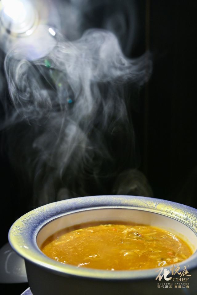 没想到 没想到那家以京城果木烤鸭而闻名羊城的“花悦庭”,在不知不觉中已经悄然转型为“现代浙菜”了。 没想到原本只是江南风月的大闸蟹,终于也被膜拜奄仔蟹和黄油蟹的岭南人“收做了偏房”,每年大闸蟹膏肥脂满时,便有了饕客的一期一会。 没想到人民群众对于吃大闸蟹的专业程度已经精进到理性阶段了,从前知道中秋吃蟹乃是以讹传讹,重阳持鳌才是上上之选,到如今已经知晓“天不冷,蟹不肥”。可怜身上衣正单,可爱桌前蟹正肥。在冷空气即将横扫广东之际,花悦庭的这一席“宴遇鎏金,蟹逅风味”,可谓是老房子着火——迟来的爱刚刚好。 没想到中国第一款现代黄酒“慢宋”在一片质疑声中获得了市场的认可和喜爱,作为搭配新派蟹宴的不二之选,昨晚的在座宾客乐得陶然。 没想到,真的好,人生如果是一眼看到头的跋涉,那将是一场沉默的苦旅,而正是充满惊喜的许多个没想到,让时间变得柔软,让袭来的夜风变得温暖。
