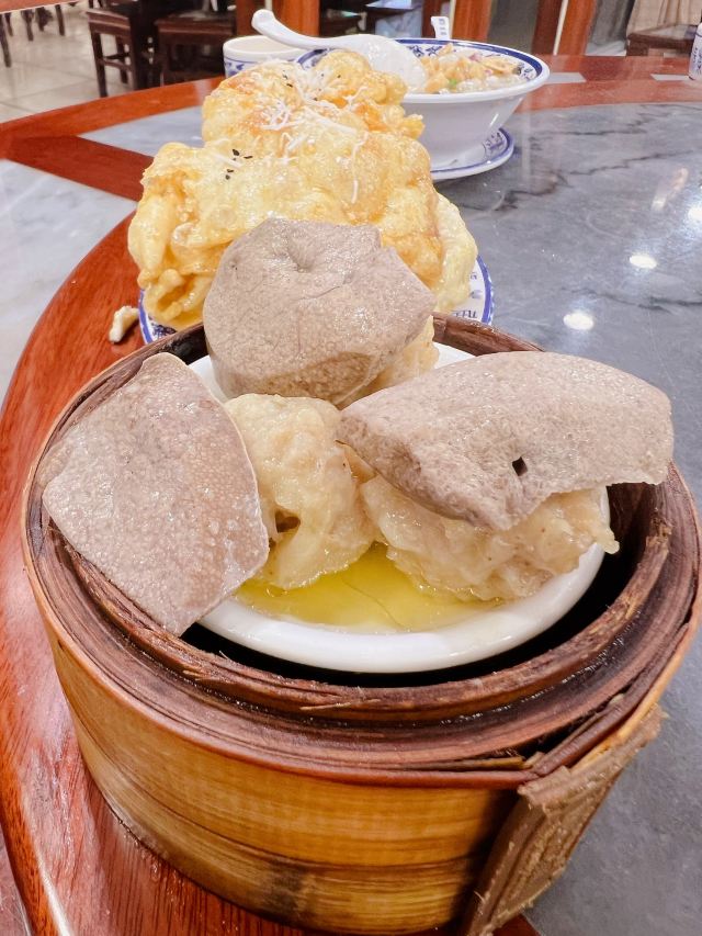正牌一旧云来广东一定要吃这个|隐藏在中山八的粤式夜茶 不想煮饭的师奶🤷♀️就爱泡茶☕️楼,来试试隐藏在中山八的粤式夜茶-观绿茶居! 木台凳🪑的装饰有怀旧风,但没靠背是硬伤! 推荐: 棉花滑鸡扎,酱汁浓稠,鸡肉🍗和浮皮、冬菇包在腐皮内,很有老西关特色! 蒸猪肚烧卖,真系好大件猪肚,🐷猪肉新鲜! 价格💰不高,卖相精致,附近街坊可以冲啦! 餐后来一包渔大叔66虾🦐,无论是直接吃还是做汤都不错哦! 66虾🦐高钙,低脂,高蛋白,0添加防腐剂,大人🧑或细路🧒都适合!制作时把新鲜虾去头,去皮,去虾线,人工剥皮保留虾尾!完美线条口感好! 🏠餐厅:观绿茶居(中山八路店) 🚘地址:富力商贸大厦29号 #粤式茶楼