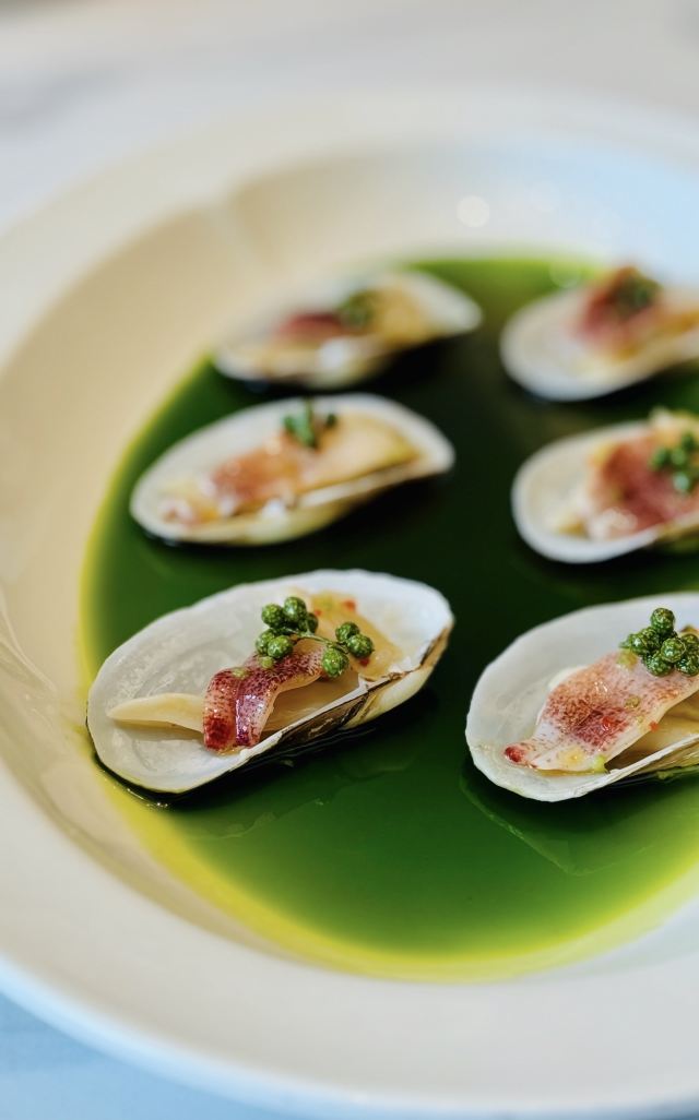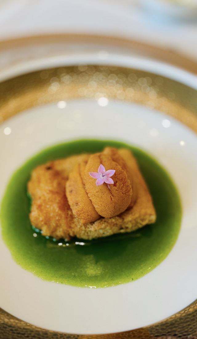 小丽寻觅记星景|广州琶洲CBD·精致潮粤菜天花板 隐藏在琶洲CBD星河湾中心3楼,星景餐厅定制一对一尊享服务,彰显出餐厅的高端属性,青花瓷茶具,小吃果盘一应俱全,尊贵感爆棚,现代彩绘与古典灯饰交相辉映,时尚与传统兼容的浪漫氛围感拉满,除了中西合璧的建筑美学之外,还有米其林星厨给你带来的舌尖艺术。 餐厅以东方诗韵抑或异域风情命名包厢——夏韵、冬藏、千秋雪、西江月,或是图兰朵、西西里、香榭风、戛纳秀……每个用餐空间都如唐诗宋词般浪漫写意! 🌈🌈🌈 前菜 冰烧三层肉,层层叠叠的酥炸五花腩肉,历经腌制、风干、烤制三道工序,口感外酥里嫩,兼具烧肉的脆,叉烧的香,瘦肉的嫩,是道不折不扣的功夫菜!第一层外皮嘎嘣脆,第二层肥肉香而不腻,第三层五香瘦肉爽、嫩、入味。完全不同于其他餐厅,脆润化于舌尖,口感堪称完美。 - 潮式冻红毛蟹,蒸熟后冷冻食用,搭配姜米红醋,葱茸,普宁豆酱。 入口爽甜,不蘸红醋,可以吃到蟹的原汁原味,蟹钳也是肉多多,一口下去满满的幸福感 。 汤品 - 姜花干贝炖獐子岛海螺 干贝海螺,海鲜高汤,清而不淡,浓而不咸,加入香水一样的野姜花是一绝,整碗汤自带花香,味道也太迷人了! - 主菜 - 白切葵香鸡,吃葵花籽长大的鸡,鸡皮油亮反光,皮之下是一层果冻质地的胶质,再是极薄一层鸡油,肉看不到纤维,骨头处是殷红。 - 鸡汤秒灼加拿大象拔蚌,不同于最普遍的刺身做法,黄师傅选择了用象拔蚌结合极具粤式风味的鸡汤。走地鸡用清水煲滚至出味,仅留清汤,象拔蚌洗净只取虹管,切成四方厚块,放入滚烫鸡汤中汆汤10秒,与虾酱芥兰一起摆盘,清新雅致,光看卖相就已经令人垂涎。入口是刚刚好的鲜嫩脆爽。 - 高山鸡油菌煎焖西沙龙虾,云南菌菇上新季,甄选多种当季新鲜菌菇入馔,鸡油菌的香,用节虾熬制汤,让每个菌吸满虾汤,山珍海味的结合,鲜美无比。在炎炎夏日为你打造 ,惊艳味蕾的清爽美食体验。 - 潮州扣雪花牛肉珍珠瓜,奇妙的组合。一个是千里之外的草饲澳牛,一个是广东本地的家常苦瓜,浓厚的肉香和清新的微苦在这里却一拍即合,创造出两个维度的口感。 主食 挑战刀工极限无骨鲫鱼粥,堂做位上,使用精湛的刀工变成晶莹剔透的薄片,放入粥中秒灼后盛出,保持鲫鱼鲜甜嫩滑的口感,在胡椒粉、香菜、葱、脆萝卜、花生米、米、潮汕咸菜粒的簇拥下,汁鲜味美。搭配黄金油条又是一种新的体验,值得推荐。