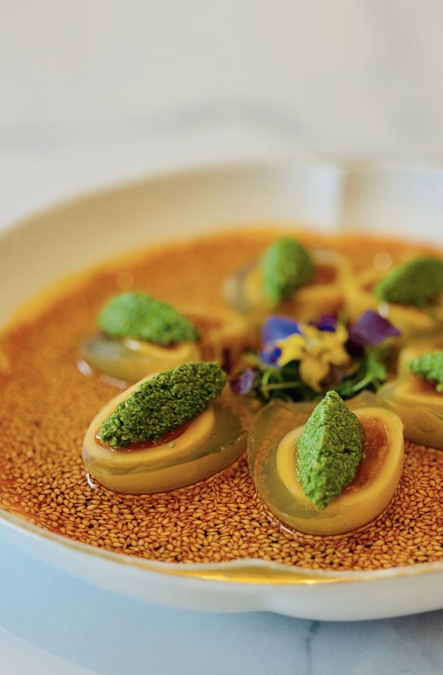 妖妖旅记‼️ 氛围拉满,一口难忘|这才是精致潮粤菜顶流 当东方美食与现代艺术韵味相结合会碰触什么样的花火呢?星河湾•星景携手星级名厨黄景辉师傅 Chef Fei在星河湾·星景·精致潮粤菜带你一探究竟。 首先是视觉盛宴,餐厅整体设计是首创琶洲艺术级的高端国际餐饮空间,现代彩绘与古典灯饰交相辉映,时尚与传统兼容的浪漫是满满的氛围感。 餐厅的包间一共有18套,分为中式、新中式、意式和法式4种装修风格,并且根据不同的主题空间赋与了相应名字,无论是有东方韵味的千秋雪、西江月还是充满异域风情的西西里、戛纳秀等,都充满了诗意和浪漫, 环境氛围拉满的同时,星景餐厅对菜品更是用心考究,不仅深入原产地采购新鲜食材,更是根据不同季节、节日与城市盛典设计了相对应的创新菜式,既有传承还兼顾创新,东方美食与现代艺术韵味完美结合在了一起。一起来看看有哪些好吃的吧。 前菜 ✅冰烧三层肉,脆香嫩兼具,吃起来香而不腻,口感比我之前吃过的其他餐厅家的同菜系更好。 ✅潮汕烟熏冻午笋鱼饭,口感鲜咸且充满豆香。 汤品 ✅姜花干贝炖獐子岛海螺,用干贝、獐子岛海螺为主要材料,再搭配黄油老鸡、土猪肉和姜花炖制4个小时而成的,既有海鲜的鲜美,又有独特姜花清香,建议一定要尝尝看。 主菜 ✅白切葵香鸡,白切鸡是一道经典的粤菜,他们家用的鸡大有不同,是吃着葵花籽喝着牛奶长大的鸡,看着确实和普通鸡肉有所不同,没有太多鸡油和稍微,口感很嫩。 ✅鸡汤秒灼加拿大象拔蚌,用加拿大象拔蚌切片,然后直接到鸡汤里灼三秒,再搭配星厨点缀在盘中的秘制的虾酱,入口鲜嫩爽脆,十足美味。 ✅高山鸡油菌煎焖西沙龙虾,鸡油菌的香,龙虾的鲜碰撞之后是鲜美无比的口感,山珍+海味的碰撞果然不同凡响。 ✅潮州珠瓜慢炖雪花牛肉,没有想到西餐代表选手和广州本地常见的珠瓜搭配之后竟然也能这么好吃,味道浓郁回甘,令人回味无穷。 ✅果皮豉蒜菜脯酱蒸东海海钓黄鱼,新鲜黄鱼搭配星团队秘制果皮豉蒜菜脯酱蒸过之后,就是滑嫩鲜美的一道菜了, 主食 ✅挑战刀工极限无骨鲫鱼粥,片得晶莹剔透的鱼片,在粥里秒灼后盛出,鱼肉鲜甜嫩滑,粥里海鲜的鲜甜味,果然不愧人气菜品。 甜品 ✅冰花柠香银耳羹,胶质满满,清爽甜润。 此外还有超多特色美食,喜欢品尝美食的朋友们一定不要错过了。
