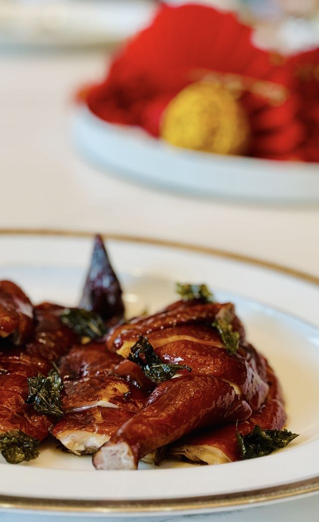 冰烧三层肉,玻璃脆皮乳鸽,岭南虾饺皇,挑战刀工极限无骨鲫鱼粥,虾饺,粤式肠粉,沙姜焗海南文昌鸡,鱼子酱琥珀珊瑚花冻,风范汁焗西沙小龙虾,煎烹椒麻安格斯牛小排,鸡汤秒灼厚切加拿大象拔蚌,乳鸽