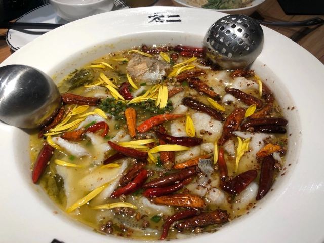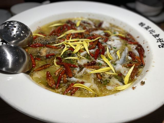 老坛子酸菜鱼,主打菜,真的很好吃,酸辣适中,咸度也刚刚好,花椒比较香,鱼嫩滑刺少,几乎没有刺,蛋酥软糍粑一定要趁热吃,蘸上红糖,软糯不腻。