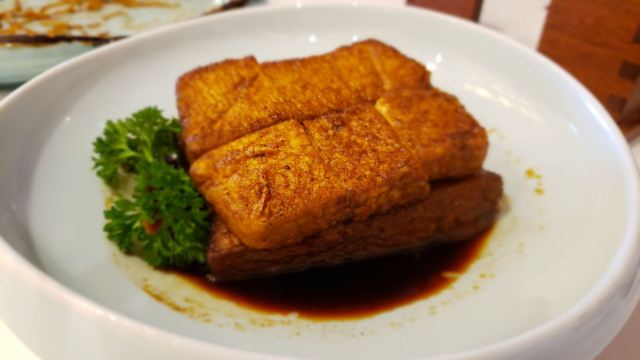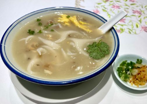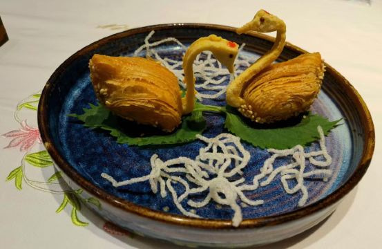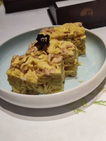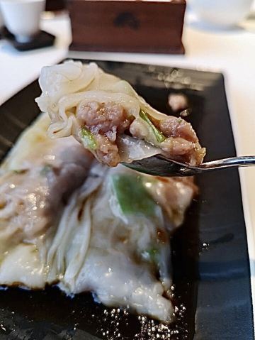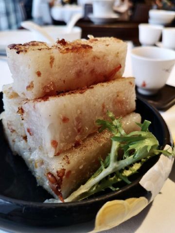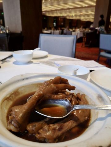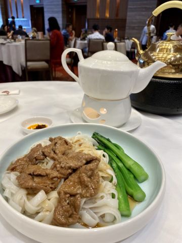 alicezmy重新改造后的白天鹅宾馆价格飞涨,性价比太低了,所以去的次数也越来越少啦。今天去得还不是时候,靠江的那头被隔离出来准备晚上的婚宴,这边就只有十多张台,还是不见天日那种。 别人请的客,提前订了台,倒是不用等位。 这里贵是贵,用料以及食物的味道还是挺好的,清淡的口味也与个人的喜好相匹配。 滑炒牛河即湿炒牛河,70/例,份量适中。粉白滑,牛肉嫩滑无筋,汁美味,咸淡适中。 潮州卤水鹅肝88/例,份量唔少,软滑无渣,空口食都唔会咸。 白卤水鹅掌翼75/例,掌翼个头较大,皮较厚。但份量较少,味偏重。 榄仁沙琪玛58/例,榄仁都几多,口感松化,甜度刚好。 酥皮叉烧包58/3个,新鲜烤制,带着余温,包皮带韧性,酥皮酥脆,馅料好味。 肉片泥丁粥70/小锅,泥丁即泥虫,煮粥味道鲜美,泥丁爽口,肉片嫩滑,值得一试。 山竹牛肉球65/3个,个头不大,卖相一般。因为饱了就没吃。 服务做得不错。不过每次坐下都是首先让你选贵价茶,普通茶20元一位其实也够贵的啦,不过品质还行。