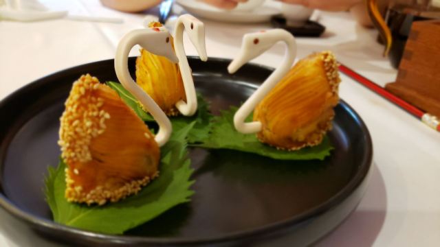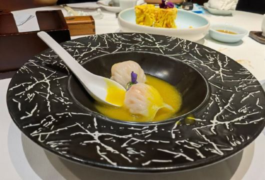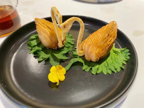HONGTU HALL白天鹅的宏图府去年成功晋升米其林,出品确实是棒棒的,推荐点心: 羊城鲜虾饺:虾仁新鲜味鲜,皮Q弹不烂,是必点的一样点心; 天鹅酥:造型形象生动,看着不忍吃,馅是鲍鱼+叉烧。 榄仁萨其马:软糯不贴牙,蛋香味十足。 吃完点心还可以在白天鹅酒店转一下,欣赏一下水池里的大锦鲤。