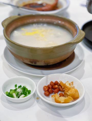 横竖是二温小迪广州必打卡早茶 我们是10点左右到餐厅,差不多等了半小时就进去了。宏图位于广州白天鹅宾馆的二楼,白天鹅宾馆环境可以,但是宏图环境一般,所谓景观位的江景也就一般。 「羊城鲜虾饺」虾饺还是很好吃,皮子有韧性,里面虾很多。 「榄仁萨其马」沙琪玛比较酥软,味道也就一般。 「鲍汁凤爪」推荐!这个味道赞,咬上去酥而不烂。 「蟹黄干蒸烧卖」现在改名叫鲜虾干蒸烧卖,味道还可以,不过没虾饺好吃。 「化皮鸡蛋挞」就是葡式蛋挞。甜度适中,起酥皮挺好次的。 「鲍鱼天鹅酥」按个卖的,味道还行,性价比不高。 「酥皮叉烧包」皮是好吃的,不过外皮有菠萝油,里面陷也很甜,吃两口就很腻。 「荔湾艇仔粥」粥烧的很稠滑,薄厚正好,馅料丰富。 💰三个人点心吃了500多,再加上茶位费25一个人(还是最便宜而不好喝的菊花茶),再加百分之15的服务费,一共付了700多。