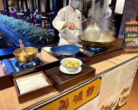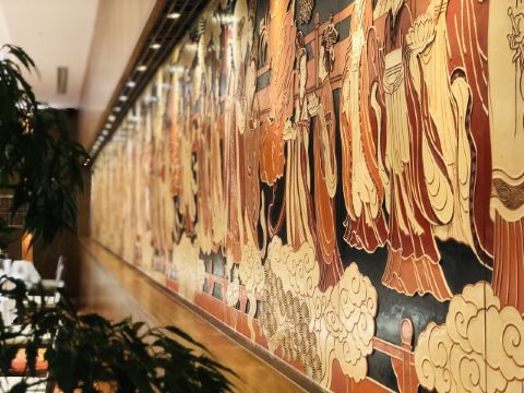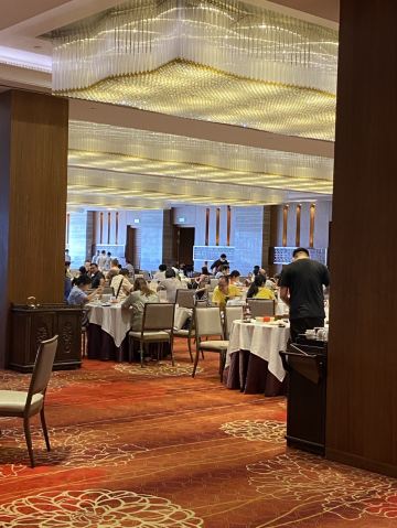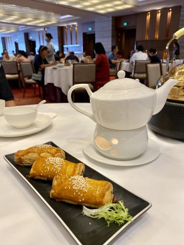 餐厅被打造为传统东方韵味环境,北面有使用7层漆雕工艺制作的《八十七神仙卷》图,南面则是一望无际的壮阔江景,大型水晶吊灯和超大的落地窗更使得整个空间高雅靓丽。早茶出品保持了一贯的高水准,可约上三五知己,品一杯香茗,轻尝厨师精心雕琢的手作点心,在静谧氛围中偷得浮生半日闲。