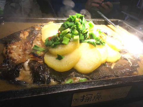 一条消费后超过了一年的点评 各种烤鱼吃完还是对探鱼比较有印象的 .【地址】 正佳广场7楼 【环境】 怀旧的装饰,暖灯系列,有种情感上的呼应和记忆,能唤起一些童年美好的回忆。 【出品】 #酱香烤鱼# 不辣星人的大福音啊。青瓜红萝卜洋葱作为点缀也是不错配菜,鱼肉鲜甜嫩,鱼皮又脆又香,酱香味配酱在吃完烤鱼直接刷喜欢吃的各种菜和菌类,味道超级入味。 #蒜泥青瓜# 青瓜作为凉菜一直是招人喜爱,蒜泥醋味浓郁,青瓜脆甜,很够消食,反正一盘都不够我吃 #拌凉皮# 对于不辣星人这道菜除了辣,凉皮没味道,其他不知道怎么做点评☹️ #冰粉# 作为吃鱼必须点的冰粉,绝对要夸一夸,超级解辣 【总结】 探鱼作为烤鱼界的领先者,整体感觉还是不错的,无论是食材的新鲜程度以及服务,环境,都是值得推荐