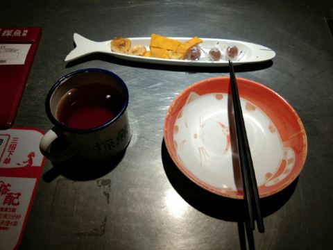 已经有很久没吃过探鱼了,最近有活动,感觉他又重回我的视野。 地点:正佳广场4楼,旁边是蔡澜 点单一个清凉组合(凉面+饮品),一碟鸳鸯糍粑,小吃盘、茶位还有冰粉,都是店家送的。 鸡丝凉面对于不吃不怎么吃辣的我来说,还是太辣了~不过味道不错,不吃香菜的,记得提醒店员不加香菜! 鸳鸯糍粑,我觉得还不错,端上来的时候还是热的,吃起来也不会太甜~ 冰粉,凉凉的,刚好可以解辣~喜欢