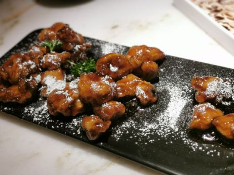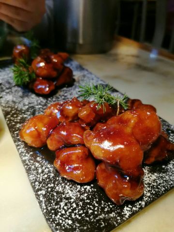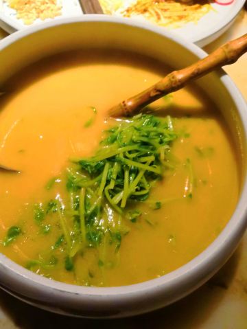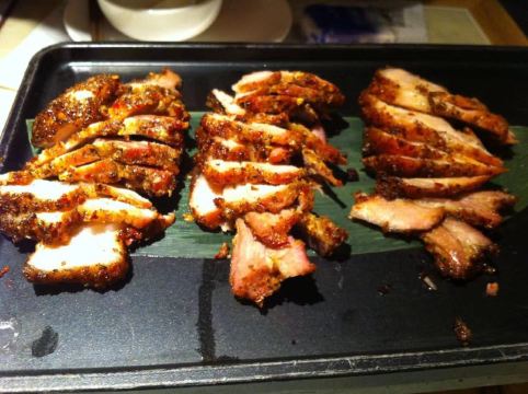 一直没来过绿茶,印象里和外婆家一样永远在排队的餐厅,可能因为过年人少,没有排队,但这家店确实位置不好找 找了一圈终于吃上了绿茶 「面包诱惑」一直看朋友圈有人晒,第一个菜就点的这个,个人觉得冰激凌应该多一点,不然吃完一半面包,冰激凌就已经吃完了。 「雪花糖醋里脊」我觉得是最满意的一道肉菜,酸甜可口主要是价格很便宜! 「绿茶烤肉」服务员推荐的主打菜,但我觉得没烤鸡好吃,肉太肥了