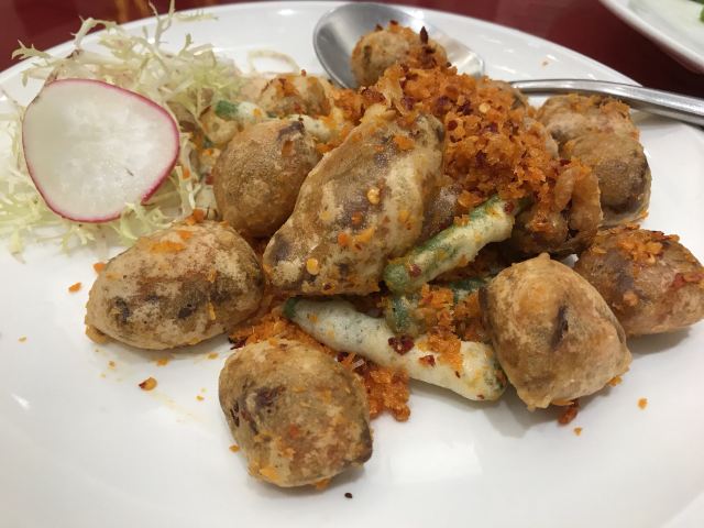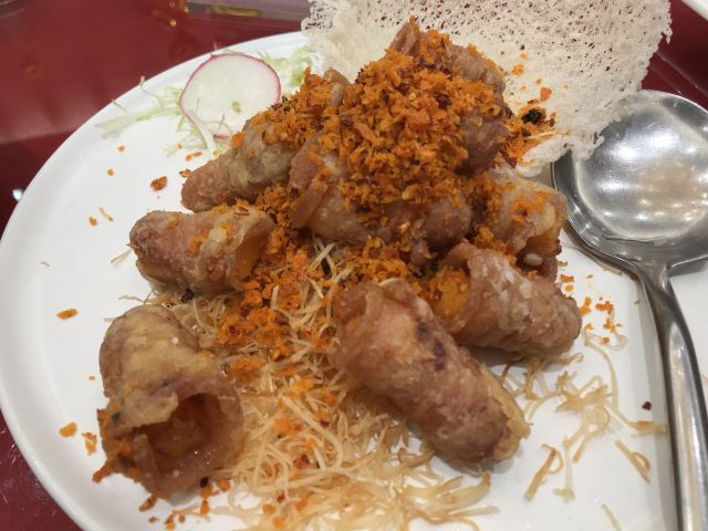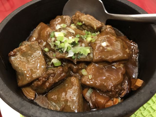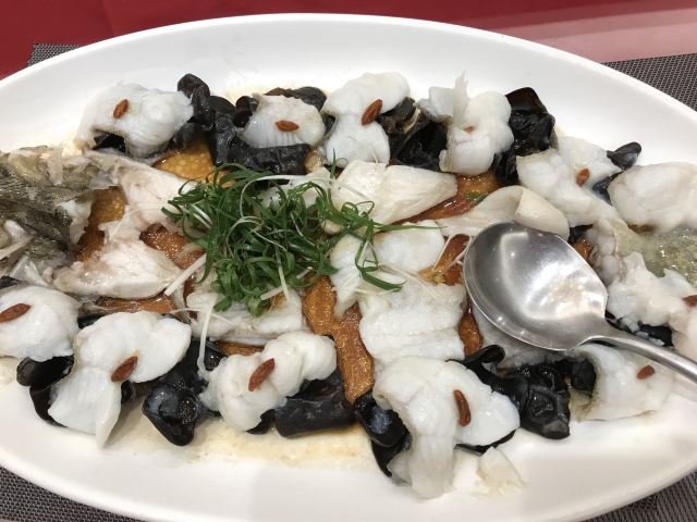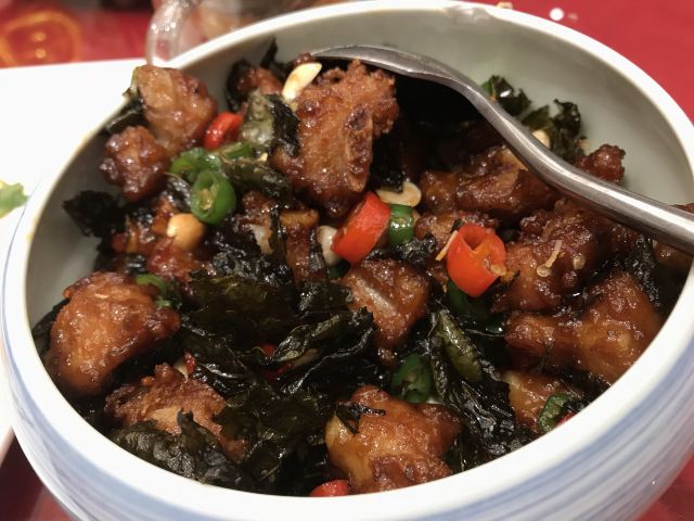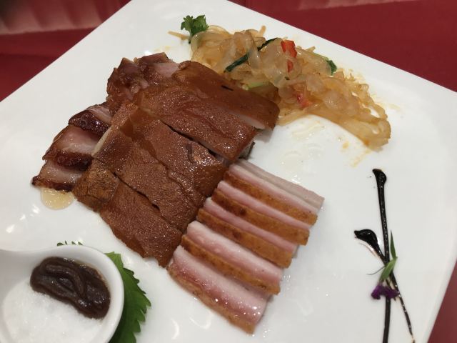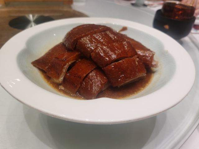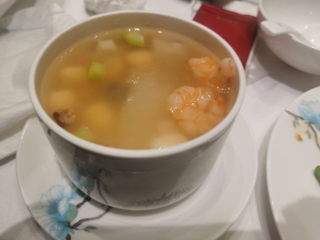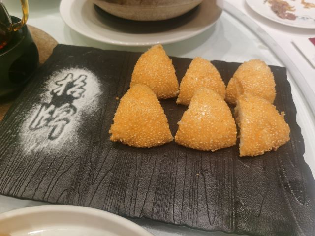 月印苍穹总体感觉菜品的设计很大众,没有啥特别奇怪的菜式。菜价中上,炒青菜48元,其他的自己感受。应季节会推出一些当季菜品,不过尝试了一两个之后我觉得口味也没啥特别的,就是摆盘好看吧。分量不大,10人点10个菜、荤菜偏多,就刚好能吃完。味道中规中矩。 【海南爽皮鸡¥208】这个好吃,推荐!虽然也不便宜……而且一只鸡看起来也不大,不过肉质紧实,皮又脆又滑。 【特色乳猪拼盘¥188】一般般,海蜇也不够脆,这么点分量这个价格emmm…… 【岭南特色蒸桂花鱼¥188】基本上鱼都是去骨的,很大一片,肉厚,但不是特别嫩,鱼不太大。 【清蒸青龙仔¥168】龙虾肉厚有嚼劲,但我总觉得有股化学品的味道,因为我很少吃龙虾,不知道龙虾都有这股味,还是其他问题。不过味道不大,我还是吃完了。 【海味绿豆酿莲藕¥68】莲藕比较粉,就那样吧,没吃出啥特别的,适合吃素的或者爱吃莲藕的人。 【金瓜乳香肉¥78】属于新菜,有咸蛋黄粒,偏咸了,肉也算筋道但是有点腻,吃了一块就觉得腻了。这个菜适合做一个主菜,其他点几个清淡的素菜,才能衬托出它的口味。 【黑金轮豆腐¥68】就是黑豆豆腐,形态看起来真的很像大块的牛肉,味道还不错,蛮香的,而且黑豆豆腐的菜式不多,可以尝试一下。 【大盘花胶煮猪肚¥138】没几块猪肚,看起来和吃起来都没啥技术含量的样子,一眼望去就是一煲白菜汤加了几个肉丸,花胶我也没吃出来好在哪里,要是请客的话不懂的人估计看不出是花胶吧,那就有点亏了。想尝试花胶汤的话不如自己买干花胶自己煲可能还更好。 【金沙咖喱牛肋眼肉¥98】新菜,牛肉包在咖喱球里,咖喱的味道不重,牛肉味也吃不出来,可能是打碎的牛肉揉成肉丸样子吧,那是不是牛肋眼肉我就不知道了。还不如要另外一个138元的实打实的牛肋眼肉。 【养生核桃包¥10/个】核桃包刚推出的时候广州酒家铺天盖地的广告,还出了速冻核桃包,让人感觉是新研制出来的招牌产品似的,所以自然要尝一下。颜色有点浅,上色不够影响食欲啊,包身还是蛮松软的,里面的核桃馅不太甜,怕甜的人可以放心尝试,但我也没吃出特别的感觉来,一般般中规中矩吧。 【功夫茶香骨¥78】新菜,虽然能看见大片的茶叶,但茶香味并没有进到排骨里,排骨不是干烧的,酱料包在外面所以口感润湿,但也不是创新菜式,感觉就是类似咕咾肉的做法,搭配了一些茶叶然后就算一个新菜了。偏咸,没啥特别。