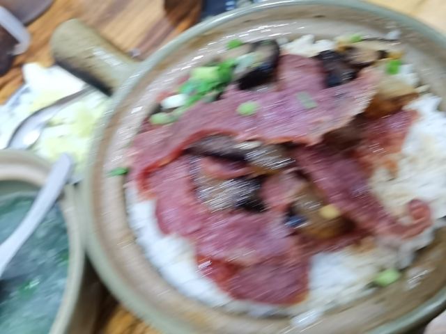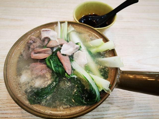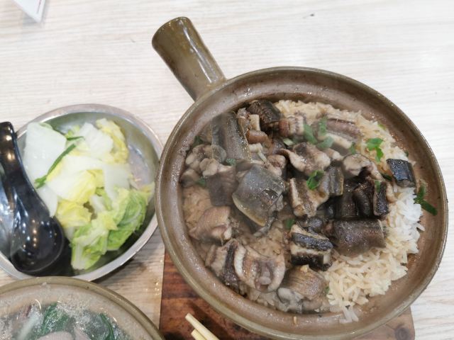 芳村一家老字号煲仔饭店,之前在陆居路开的店,后来因为拆迁才搬到现址的 有两层楼,二楼是阁楼,位置挺多的,不过因为价格实惠亲民,人气实在太旺,所以吃饭时间过来的话还是要等位或者搭台的 双拼比单个菜的煲仔饭贵2元,不过肉的份量多一倍,强烈建议要点双拼的哦!! 汤的份量也很多,就和人家汤饭的份量差不多 味道就不过不失吧,有饭焦哦 总的来说是性价比超高的一家煲仔饭快餐店
