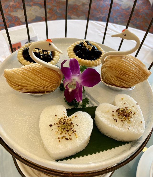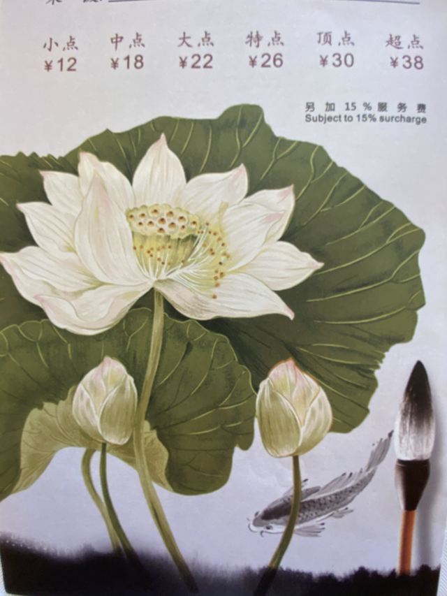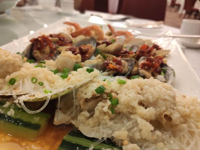 三文鱼,日本和牛刺身,黑蒜烤生蚝,牛扒,立鱼刺身,煎龙利鱼,雪糕,蒜蓉粉丝蒸扇贝,田螺粥,焗鳗鱼,荷苑虾饺皇,荷苑点心拼盘,鲍鱼汁凤爪,瑶柱萝卜糕,鲜花椒蒸鲈鱼,香菇牛肉肠粉,蟹子干蒸烧卖,花都烧骨粥,姜葱湛江鸡,生煎芝士葱油饼/打