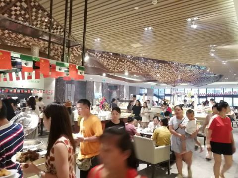 餐厅的环境很舒适,虽然自助餐时人比较多,但服务员的态度很好,让人感到温馨。
