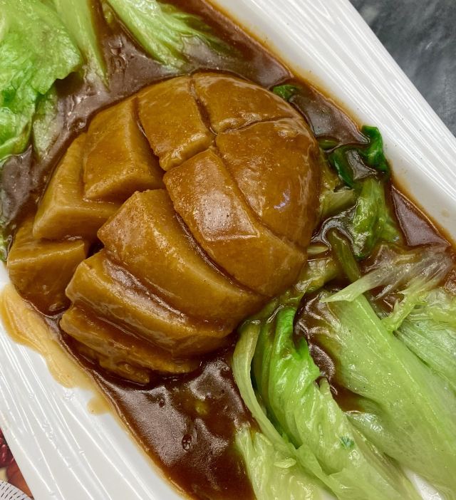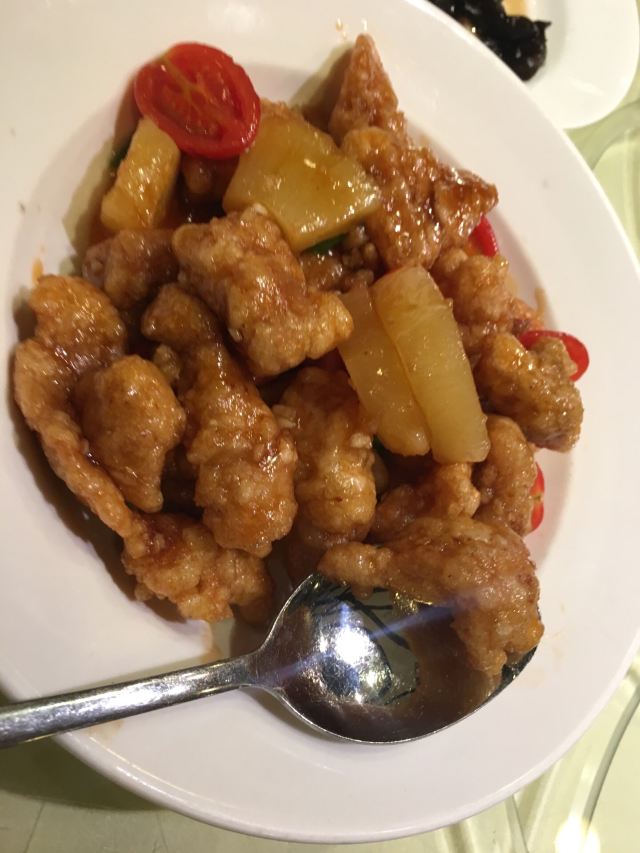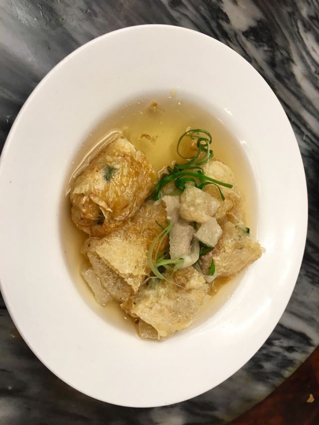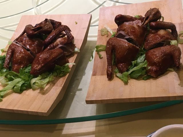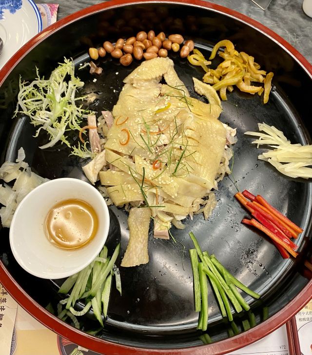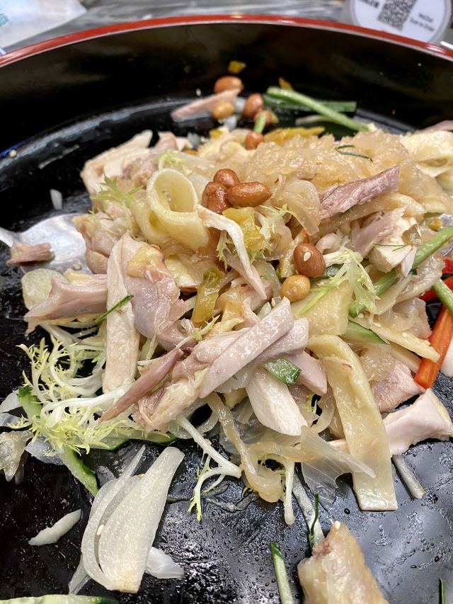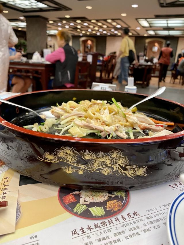 alicezmy中国大酒店食街其实去得并不多,毕竟选择有限,而且性价比不高。这次是因为酒店发了张七折晚餐券才决定过去的。 总算是有些惊喜,多了一些菜式,也多了一些新意。 风生水起捞封开杏花鸡值得品尝。这道菜用一个大漆盒盛载,美观大方兼具古韵。鸡的品质上乘,味道丰富多样。 虾子扒柚皮虽然用放大镜🔍都难觅虾子的踪迹,然而柚皮的确软滑入味但味道又唔会过重,伴碟的生菜碧绿爽脆,相当可口。 榴莲薄饼就保持一贯的水准,饼既薄又有张力,真材实料的榴莲又香又甜。 中酒的餐厅最值得称赞的是不强求客人点茶。因为晚饭喝茶容易失眠,所以早上吃点心才会点茶,晚餐买瓶矿泉水喝就算了。 两个菜一个点心结帐近三百,最后优惠了七十多。