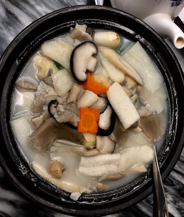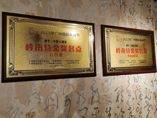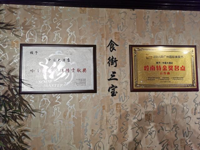 兆雄1、广州若说到五星级酒店(宾馆)饮茶美食,花园酒店、白天鹅宾馆、东方宾馆等比较而言,我会更喜欢到中国大酒店食街多一些。 2、今天(4月14日),我俩和好友,又到中国大酒店食街午餐(饮茶吃饭),点食如下:冬瓜鱼茸粥、斋汤面、白菜鲜肉饺八、竹笙高汤鲜竹、菠萝咕噜肉、浓汤杂菇浸菜苗、金牌叉烧酥。 总体而言,出品、口感,色香味形均佳,食材优质新鲜,烹饪水准堪称一流。价格虽然有些高,但是若以同类型的五星级酒店(宾馆)相关价格相比,则处中位数水平,再以品质出品、份量大小等有关性价比而比较,则食街品尝美食的性价比显然是高的。值得点赞是,食街的广府美食,粤点粤菜的出品,做得十分正宗而优质。食街因此亦荣获“老广味道-经典传承 2018 搜狐新闻美复覆厅评选 ”,这也是名副其实,实至名归的。 3、若然喜欢到高档一些的场所(环境),品试广府美食,中国大酒店食街实在是最佳选择之一。 “食为天下事 街内富乾坤”这是食街门口一副嵌头字对联,食街此乾坤,值得你去茶聚饭局。 4、食街美食之后若游玩,附近有西汉南越王博物馆、越秀公园、流花湖公园等。
