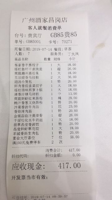 来广州最让我期待的就是吃广州酒家,为了感受广州地道的早茶文化,爱睡懒觉的我也是气的好早。 进门的时候里面人好多,是我喜欢的氛围,很多老广在这里吃早茶。广东的早茶让你觉得世上不止苟且,还有人家烟火。 很干净,人真多还很干净很难得,因为我们是三个人,只剩下大桌子了,所以需要拼桌。 茶位费每人都要收的。 蒜香豉汁排骨很嫩 肠粉很爽滑 萝卜糕里面很大颗干虾仁 榴莲酥很惊艳,喜欢吃榴莲的一定不要错过。 毕竟是上市公司,服务是到位的。 价格倒是很实惠,人均:100¥左右 TIPS: 1. 早茶时段,菜单上有些菜是不能点的。