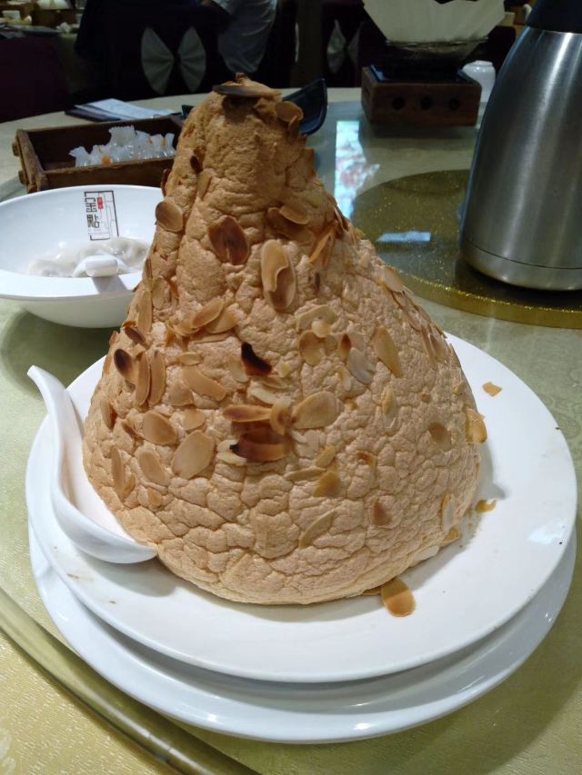团购了这家餐厅的点心双人餐来到这里,餐厅位于中山三路的威力达大厦三楼,就是中华广场斜对面的那一栋楼,陵园西路旁边那里,大厦上楼的地方不是太明显,在牛肉火锅那里可以上。餐厅很大,一边是粤菜餐厅的装修,主要安排普通点菜、吃点心的客人就座,另外一边的布局和装修截然不同,感觉是后来把其他餐厅的地方收归了,连装修都不改直接使用了,而这边应该是吃火锅为主的。咨客带位是随便走到哪里,见到有空桌就让你坐下的样子,根本不知道空桌子的情况,或者是你自己找位置吧。 双人点心餐挺丰富的,有大概20款点心供你选择,可以选8款,茶位另计,茶位6元一位,点心餐我觉得三人吃分量刚好。点心是即点即蒸的,等待的时候稍微长了一些,但是食物热乎乎的感觉还是蛮不错的。港式蛋挞最好吃,一份三个,都是现烤的,皮很酥,一碰就烂,中间的蛋浆不会很甜,味道刚好,我比较喜欢吃皮酥的蛋挞。 牛肉丸也是可以的,一份四个肉丸子,个头中等,牛肉味挺香浓的,里面还放了芫茜和陈皮,调了一下味,总体不错。蒸凤爪的分量也挺满意。但是牛腩蒸猪肠粉,牛腩真没有多少,就只有两片薄薄的,猪肠粉淋上去的汁味道很淡,就算是蘸着好多汁来吃,都没有味道。脆皮泡芙中规中矩,没有多少惊喜。