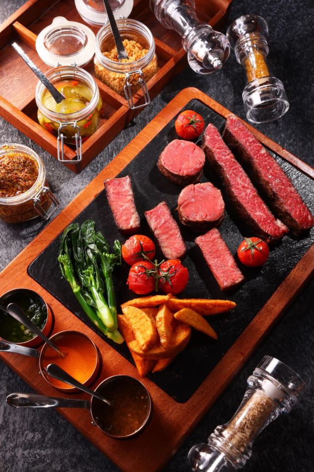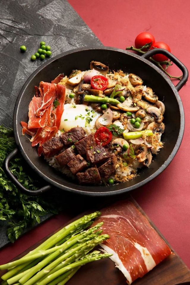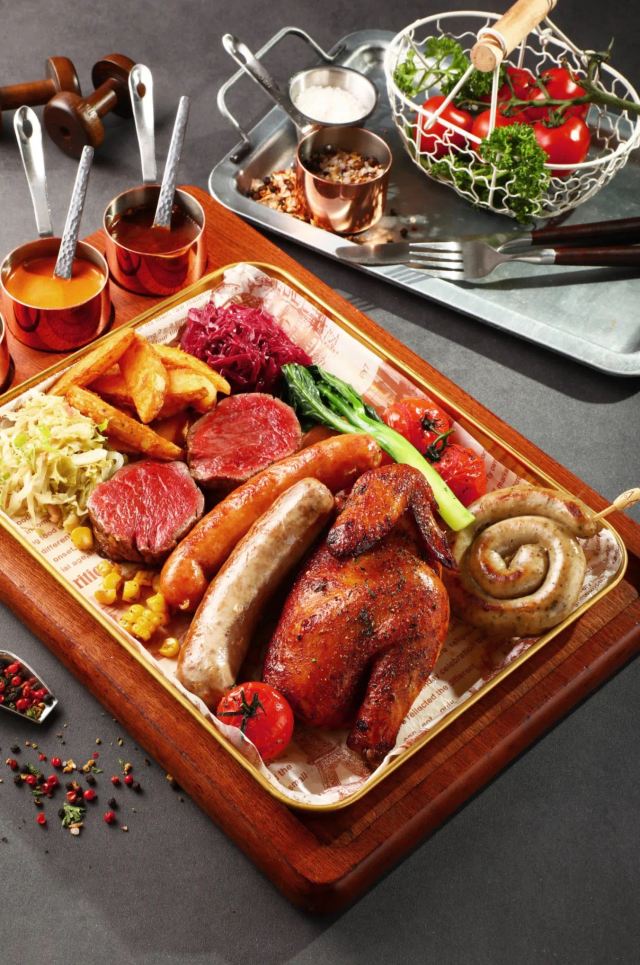 餐前面包,西堤臻烤厚牛排,面包配磨菇酱,考伯沙拉,炙烧厚切牛小排,象拔蚌海鲜浓汤,匈牙利牛肉清汤,库伯沙拉,炙烤厚切牛小排,法式鹅肝牛排,安格斯肉眼牛排,普罗旺斯法香牛排,奶油菌菇浓汤,甄选牛排联盟,西班牙海鲜饭,牛肝菌奶油意面,鸡肉松仁菠菜汁意面