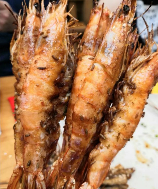 羊肉串牛肉串是必点的,肥瘦相间的肉质,口感就是不一样,带汁,拌上孜然和调料真的挺好吃。生蚝好大一只,挺肥美的,很新鲜。虾肉结实新鲜很q弹,好吃。